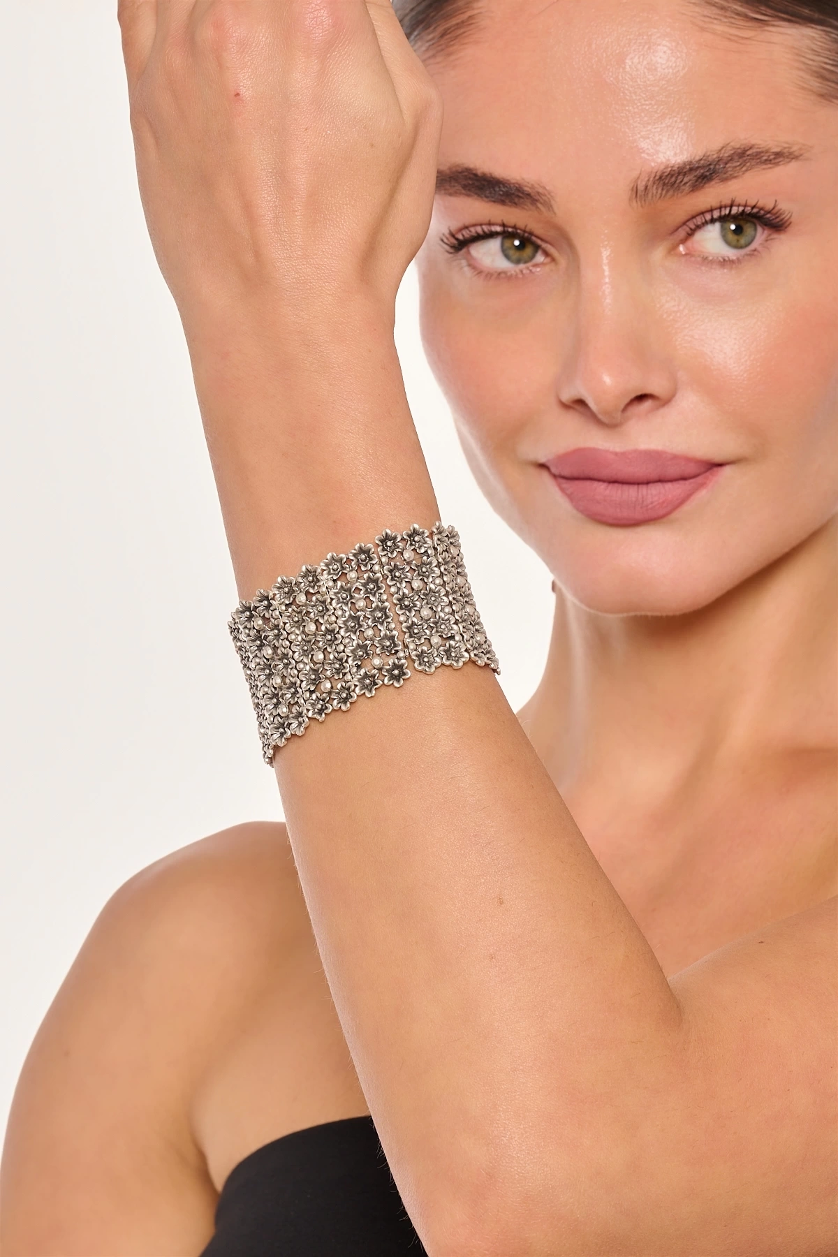 Kiraz Burgundy Stoned Silver Plated Bracelet