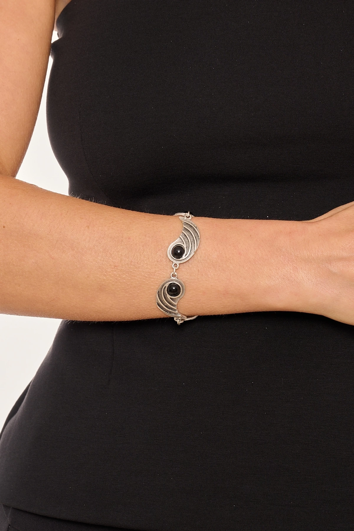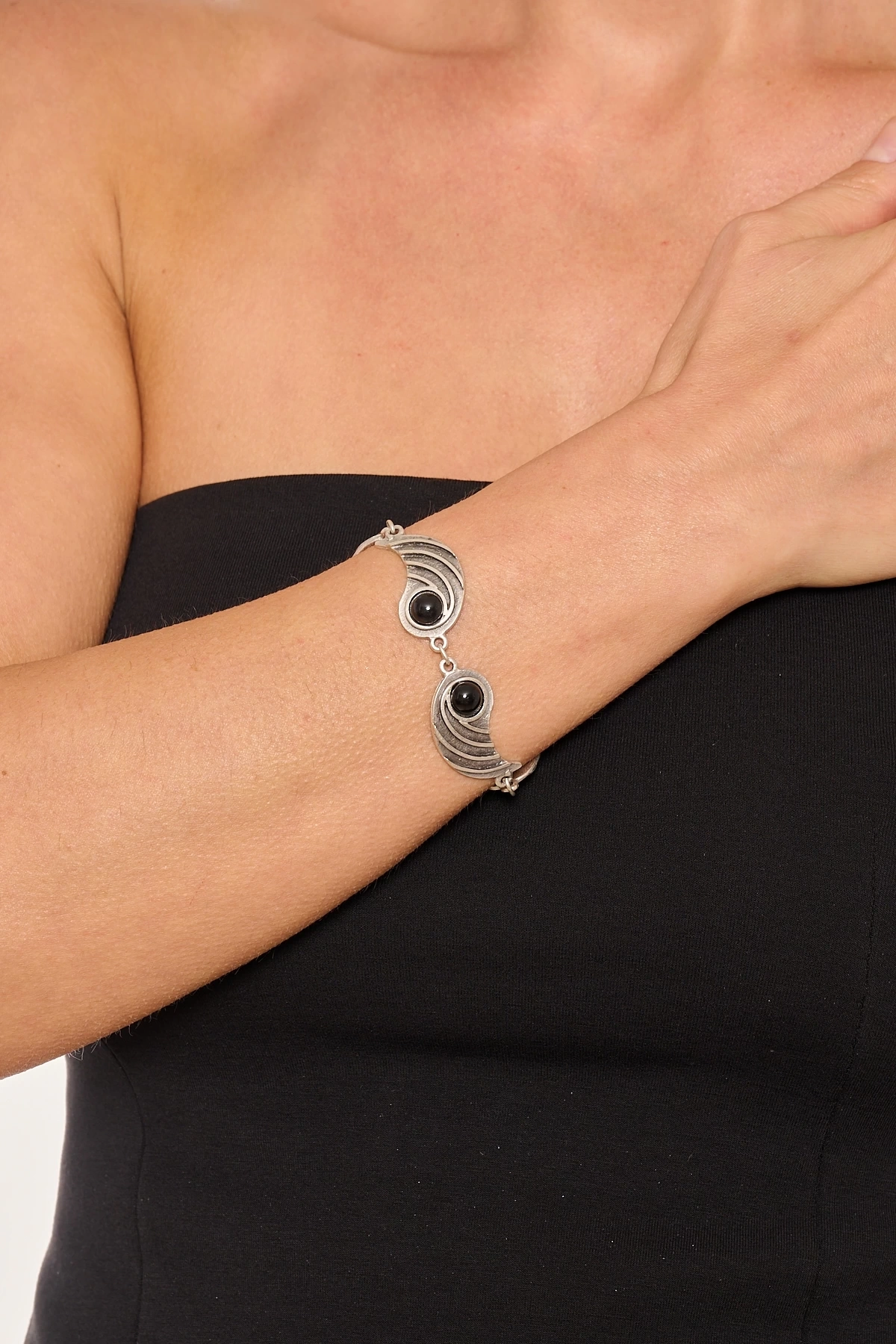 Kiraz Burgundy Stoned Silver Plated Bracelet