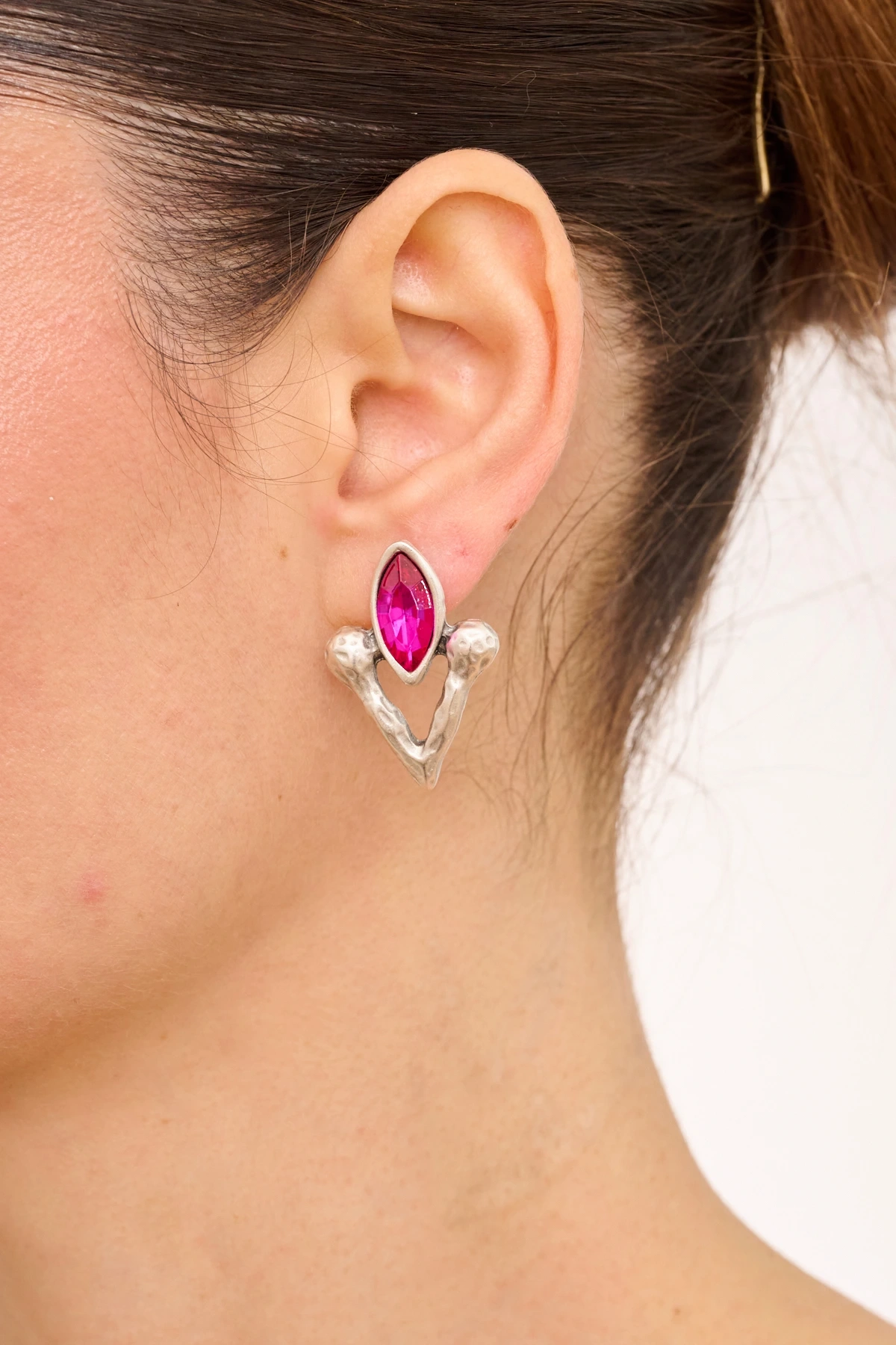 Kiraz Fuchsia Crystal Stoned Silver Plated Earring