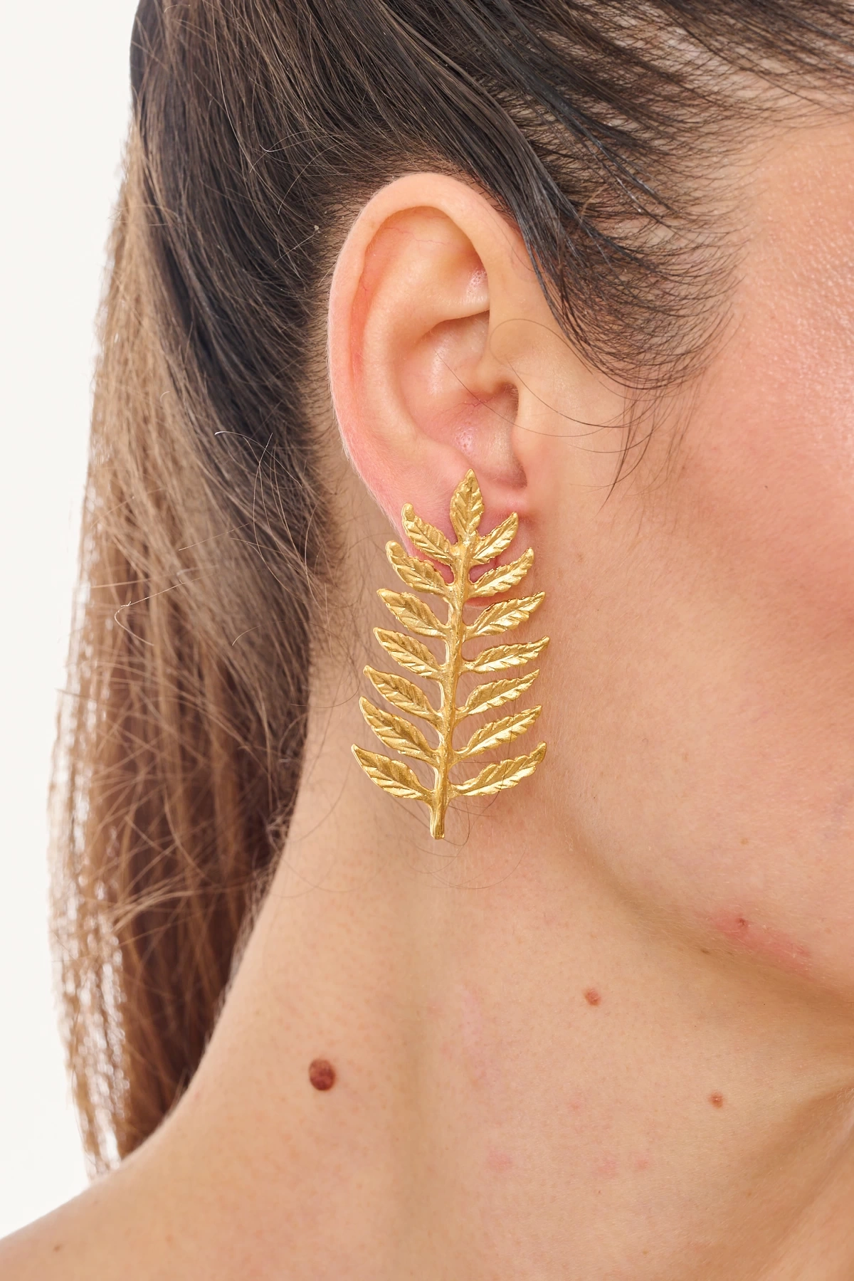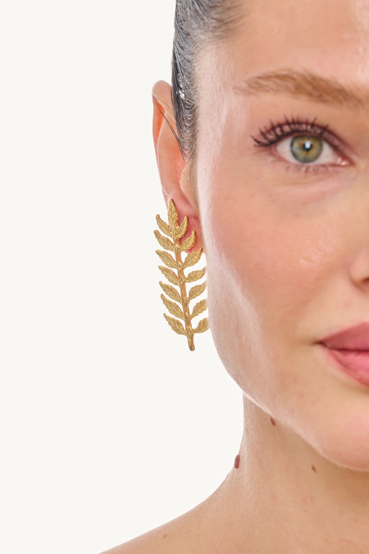 Kiraz Green Enameled Silver Plated Leaf Earring