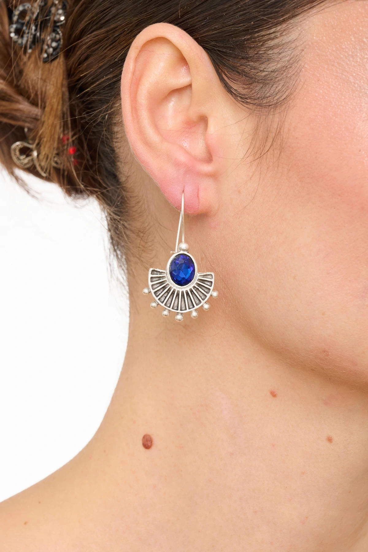 Kiraz Dark Blue Crystal Stoned Silver Plated Earring