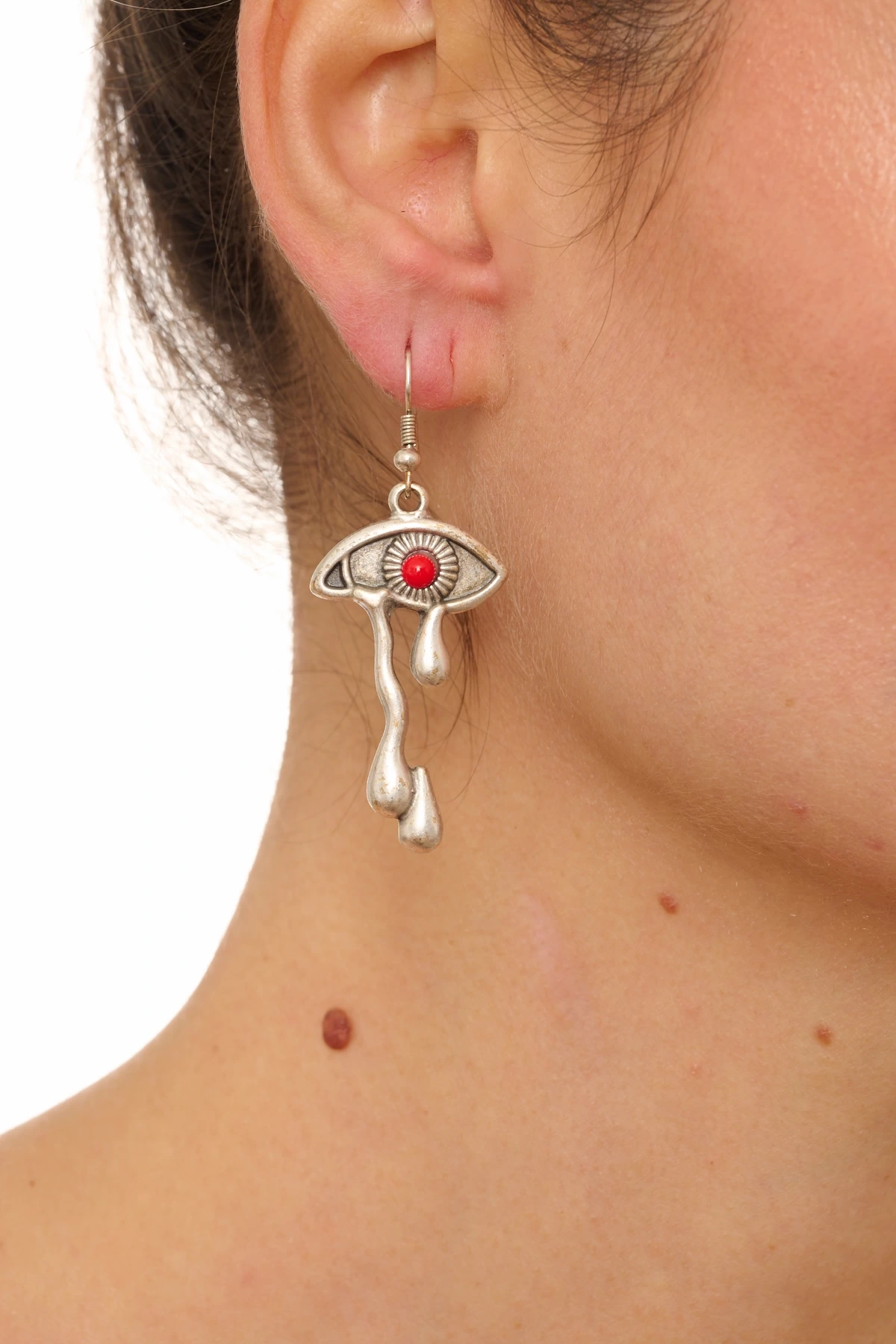 Kiraz Burgundy Stoned Silver Plated Eye Earring
