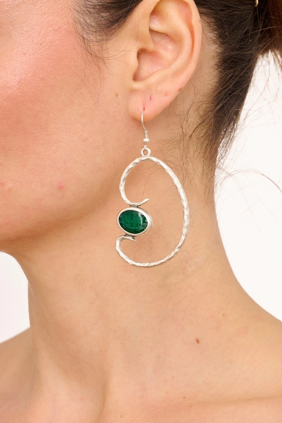 Kiraz Green Enameled Silver Plated Earring