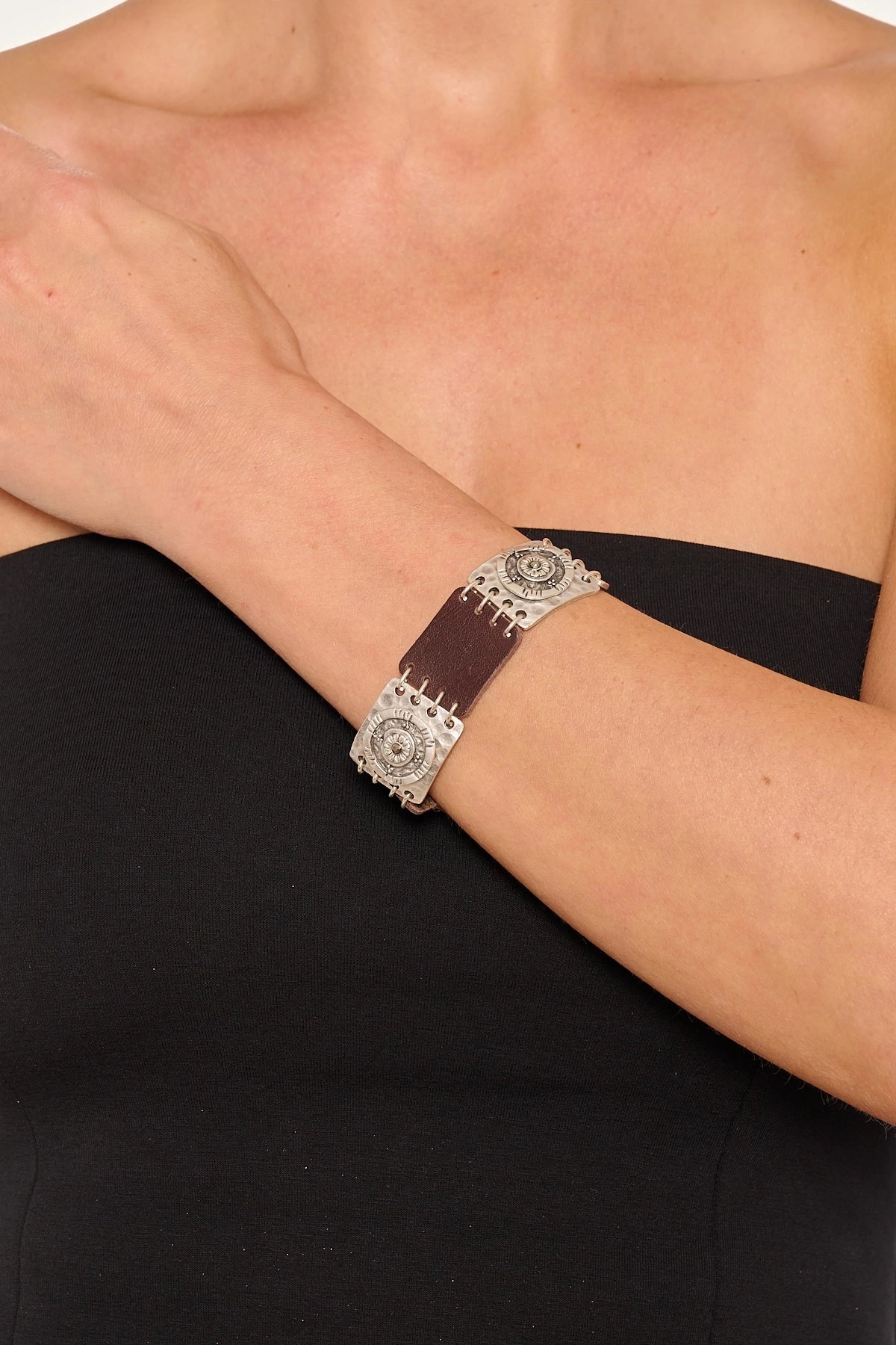 Kiraz Burgundy Stoned Silver Plated Bracelet