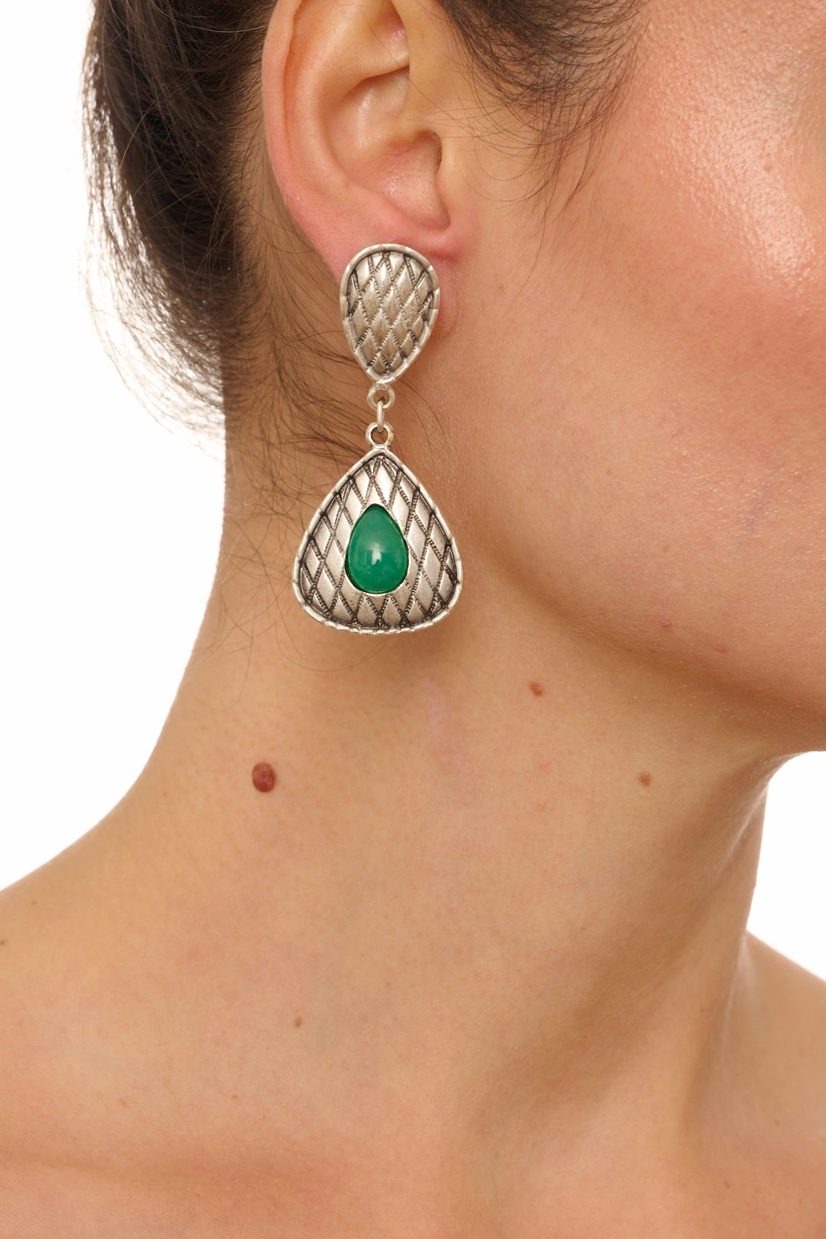 Kiraz Emerald Crystal Stoned Silver Plated Earring