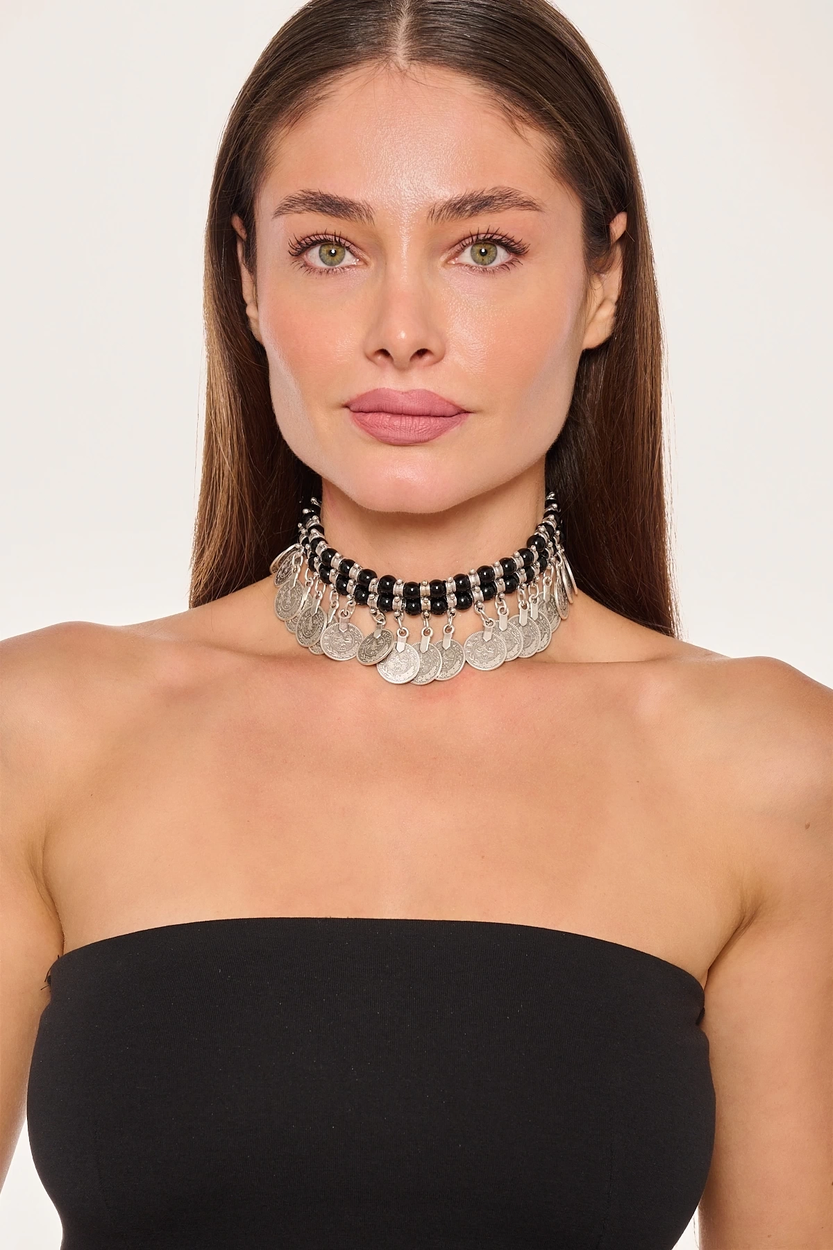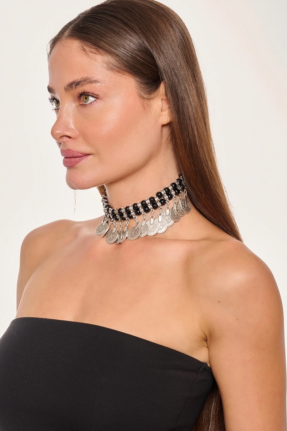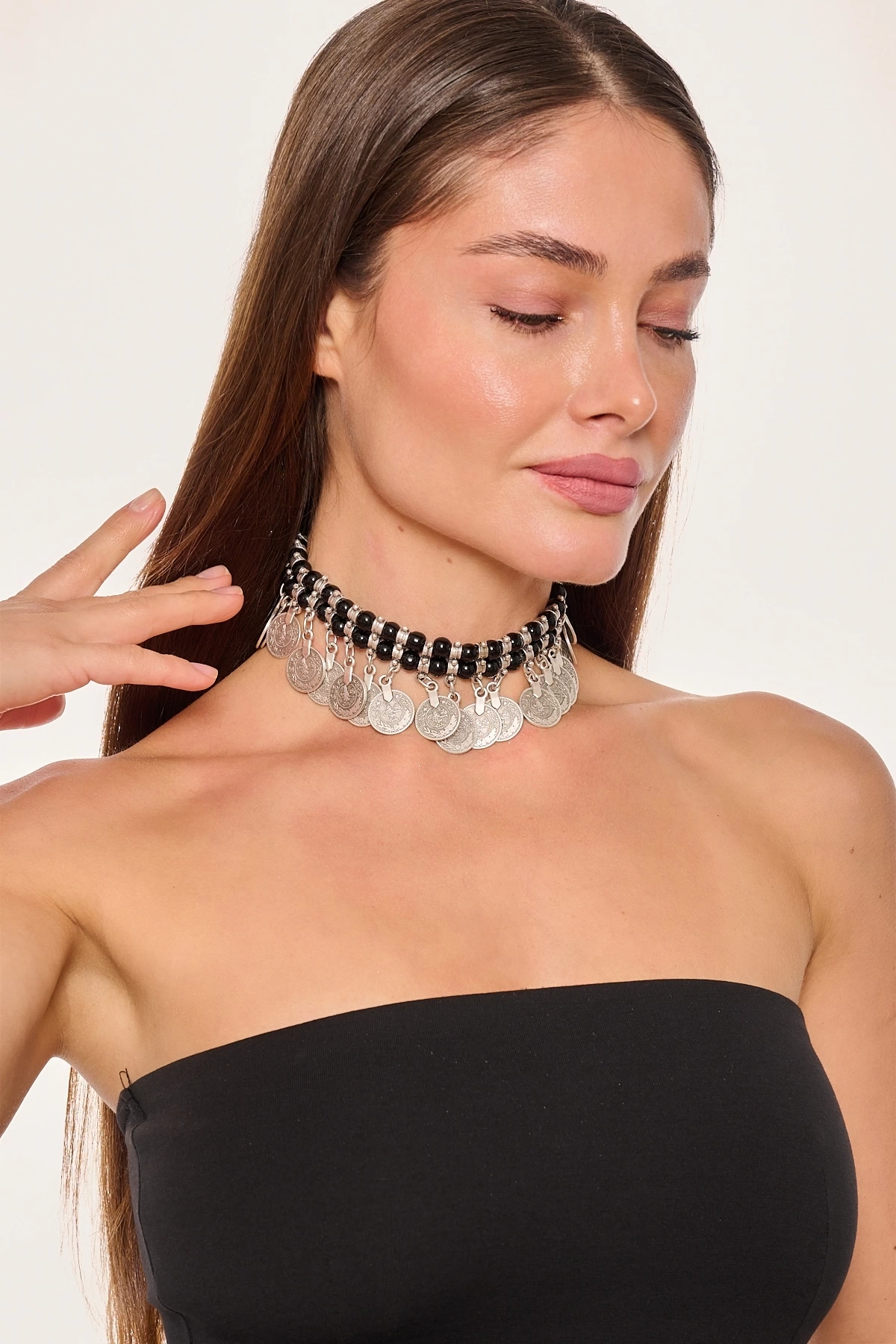 Kiraz Black Beaded Silver Plated Necklace
