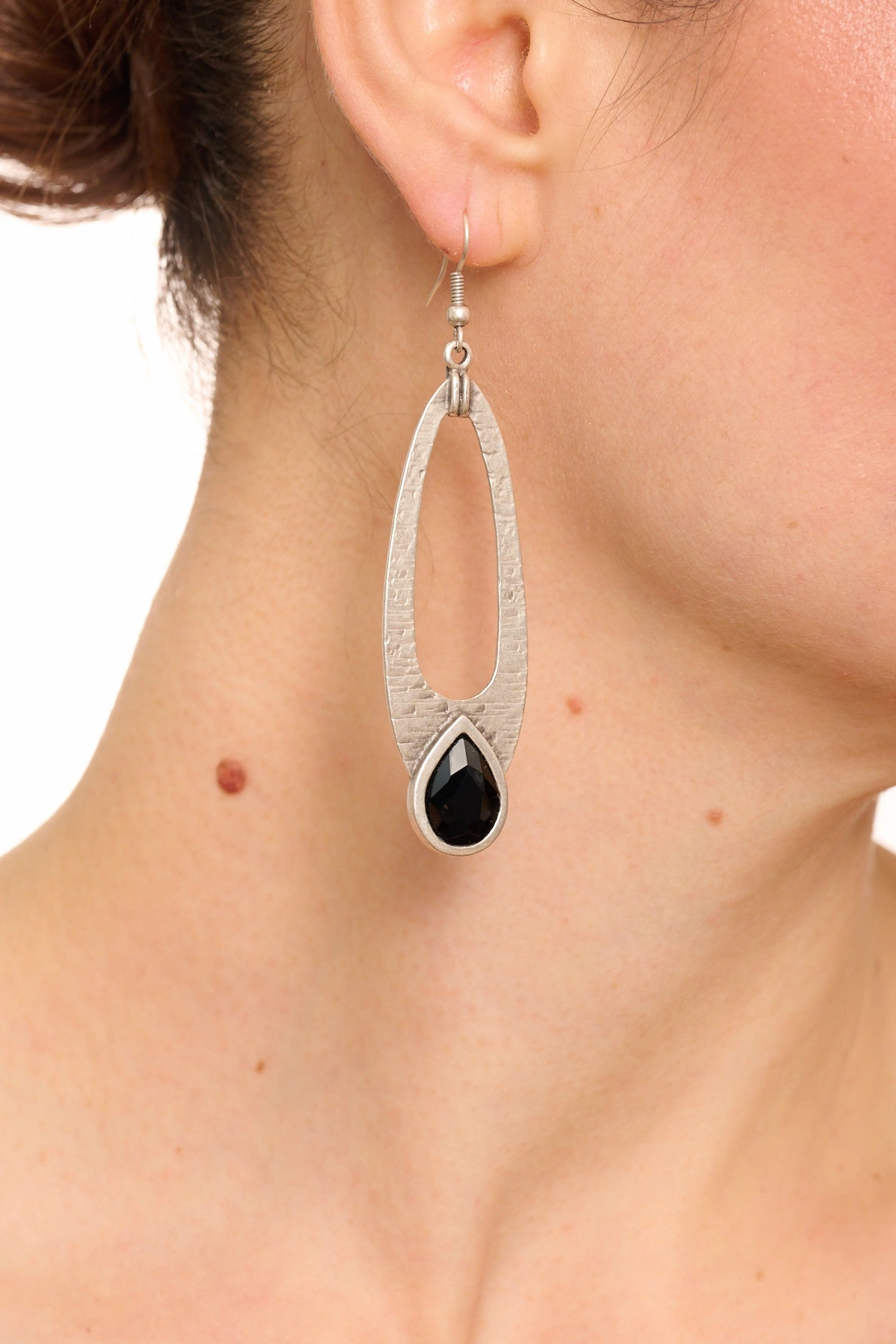 Kiraz Black Crystal Stoned Silver Plated Earring