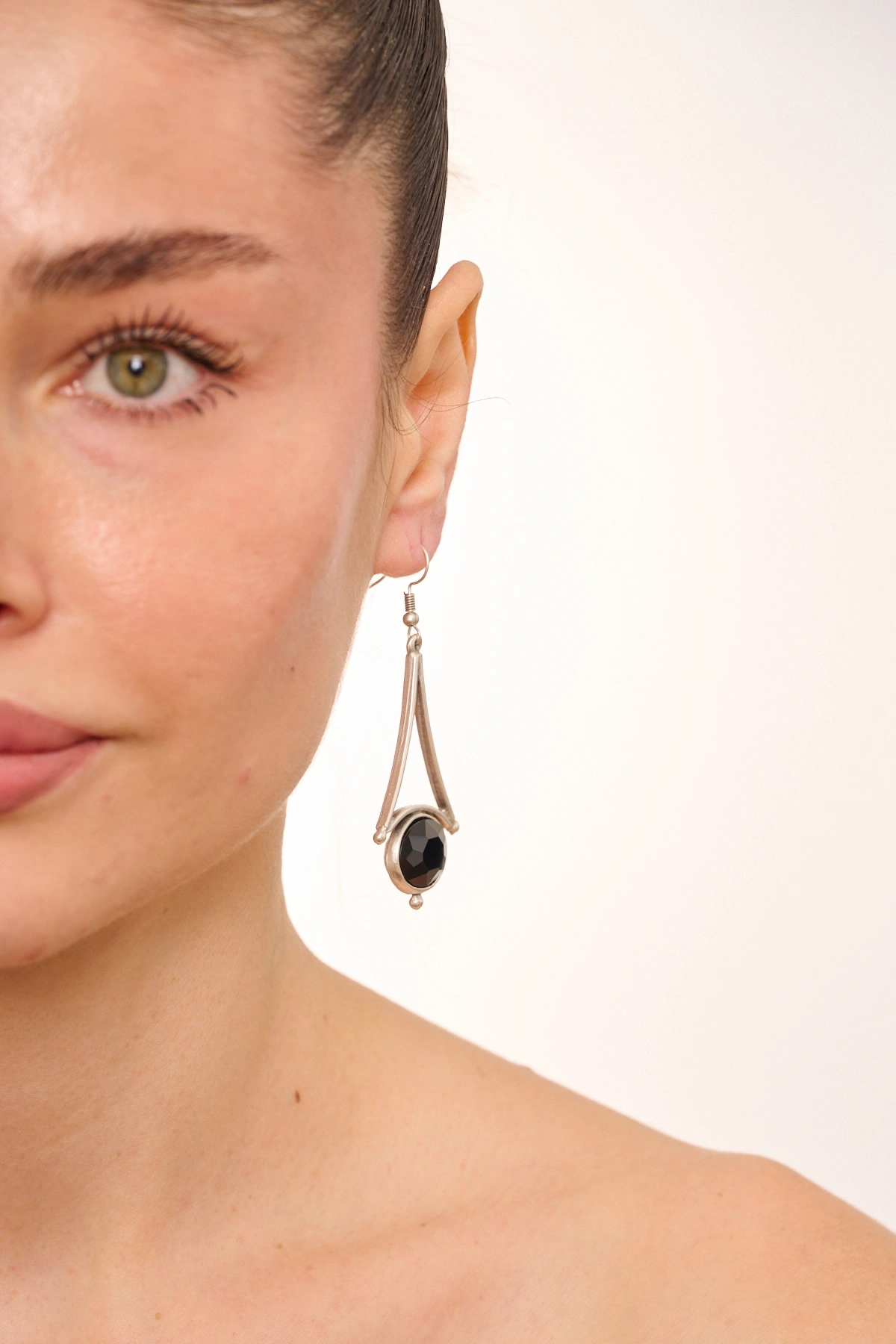 Kiraz Black Crystal Stoned Silver Plated Earring