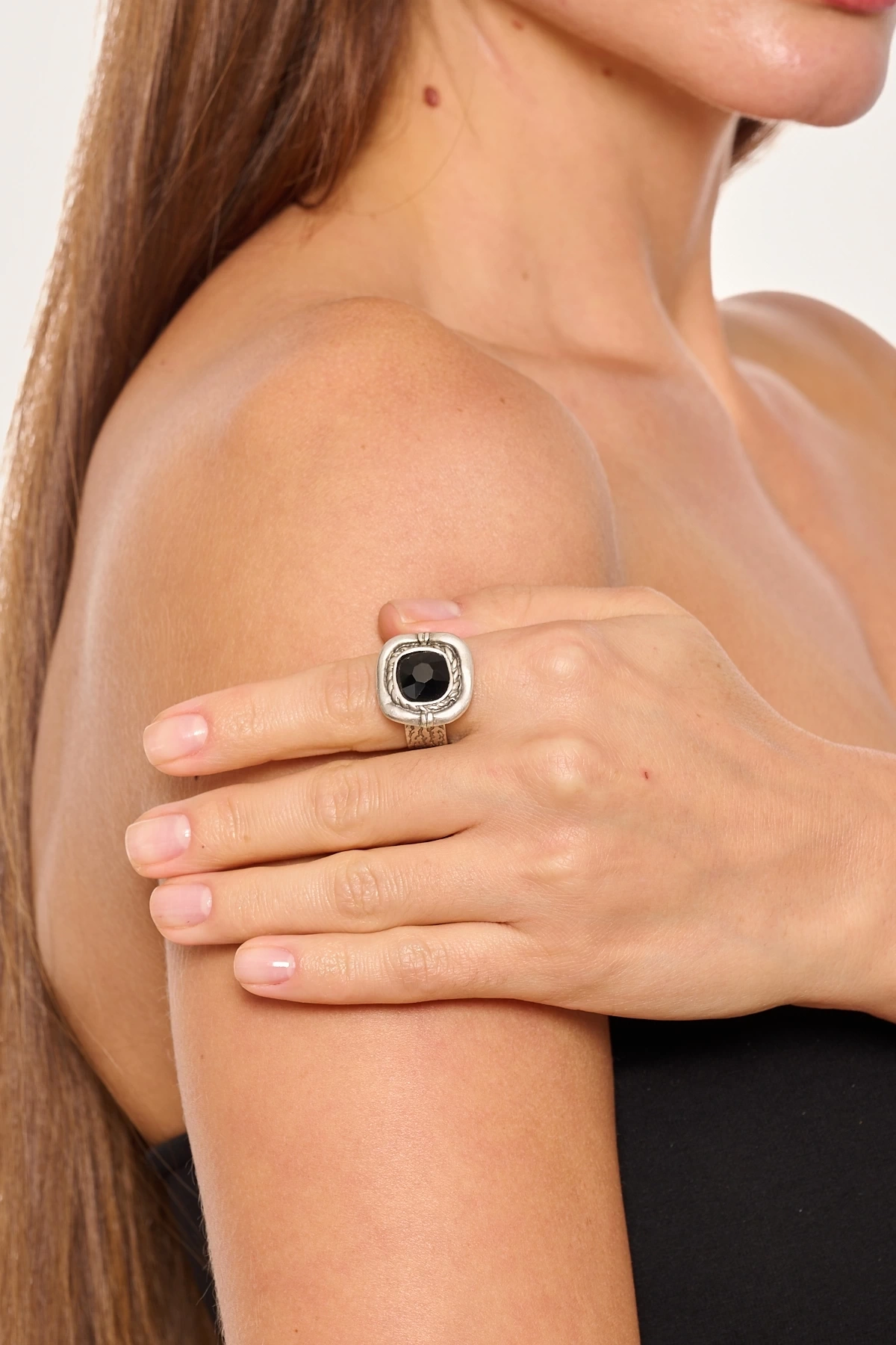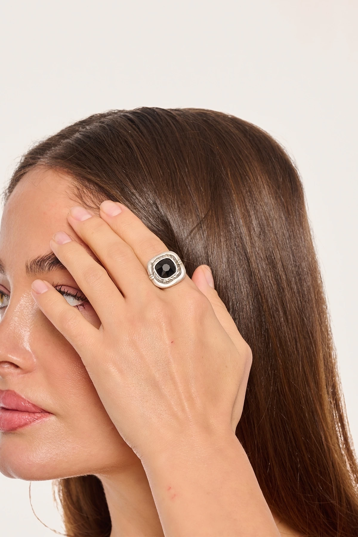 Kiraz Black Crystal Stoned Silver Plated Ring