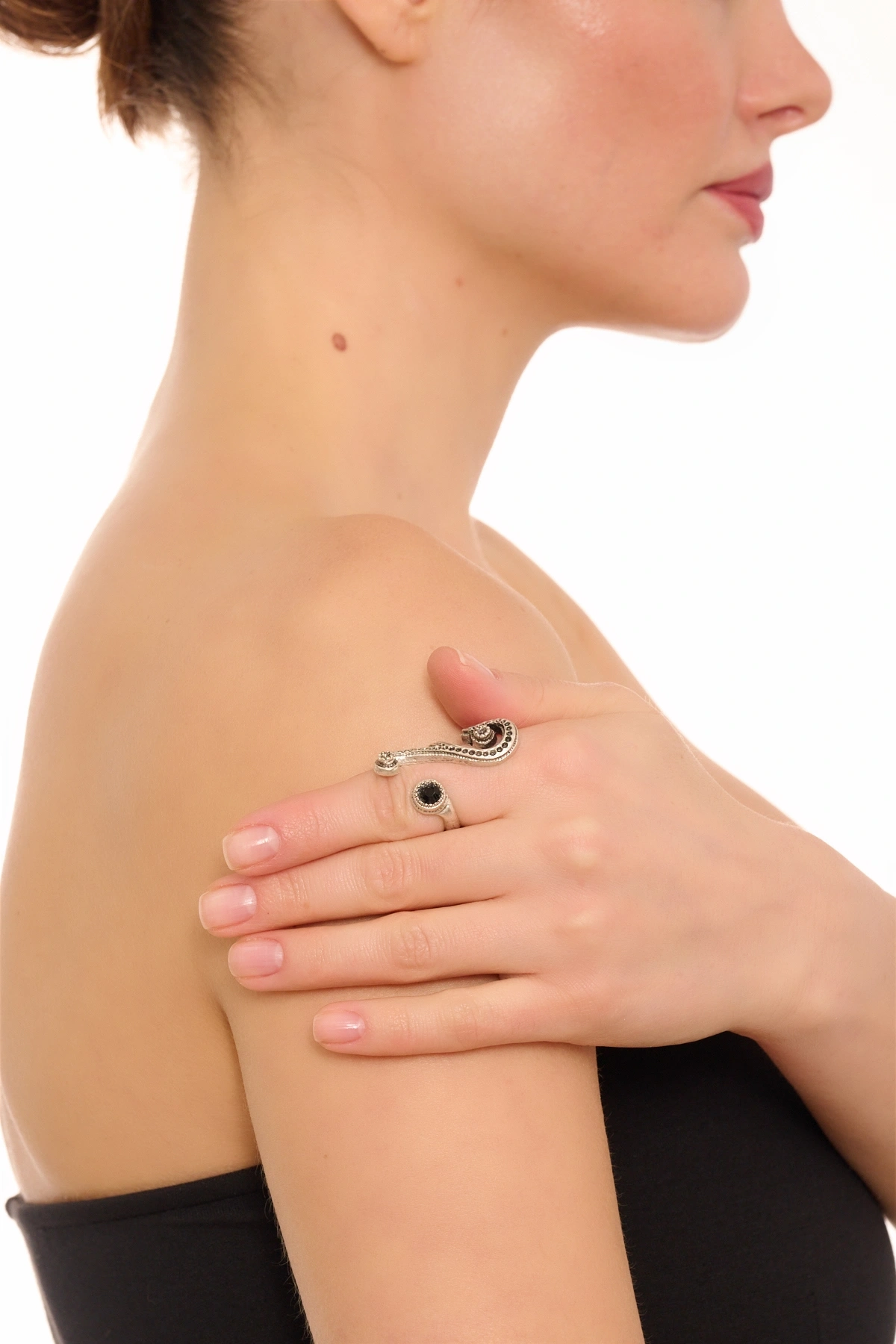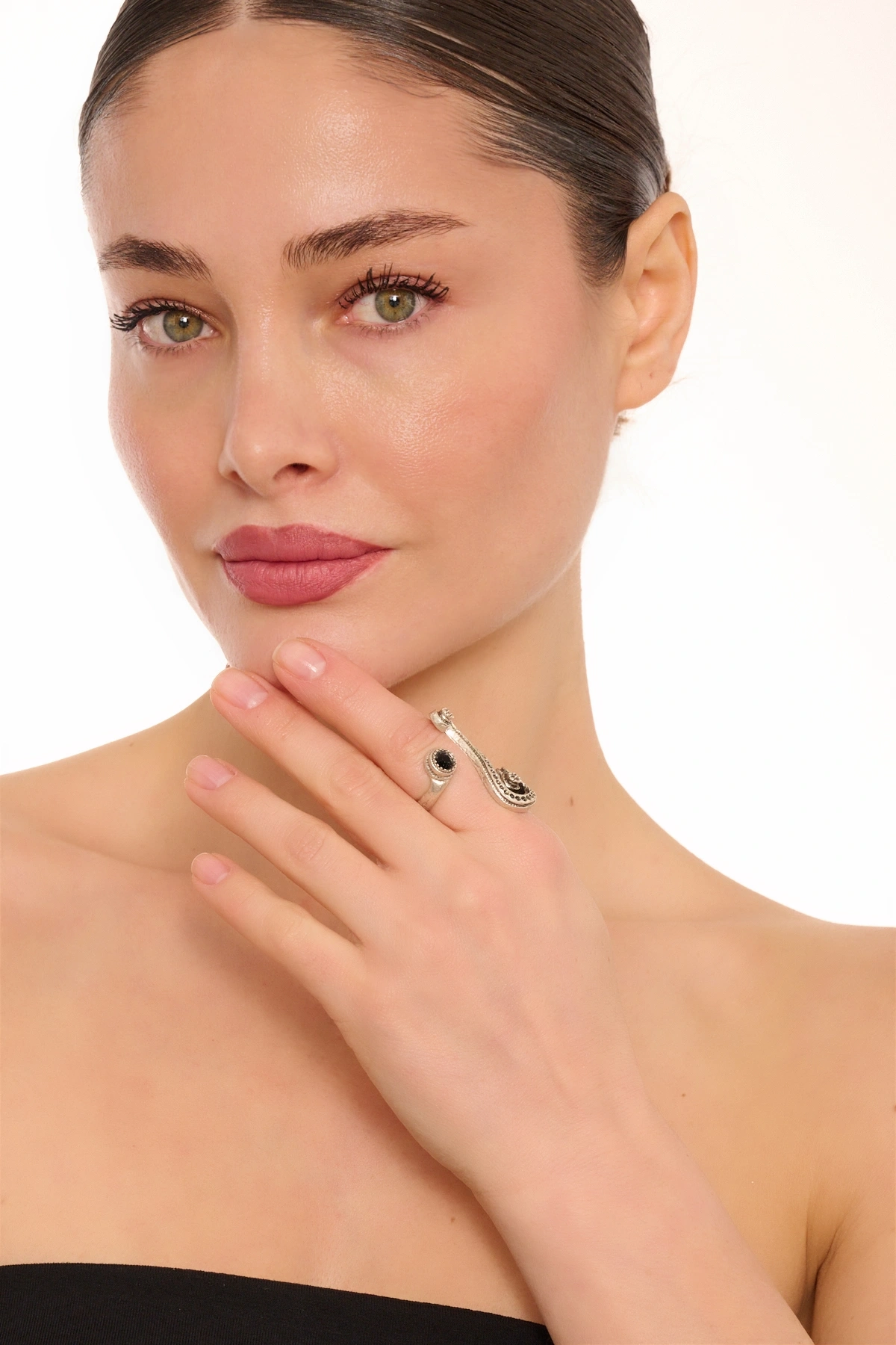 Kiraz Black Crystal Stoned Silver Plated Ring