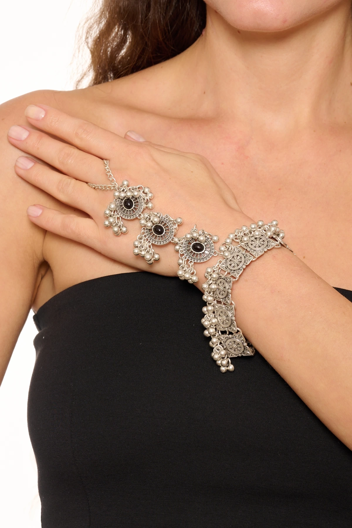 Kiraz Burgundy Stoned Silver Plated Bracelet