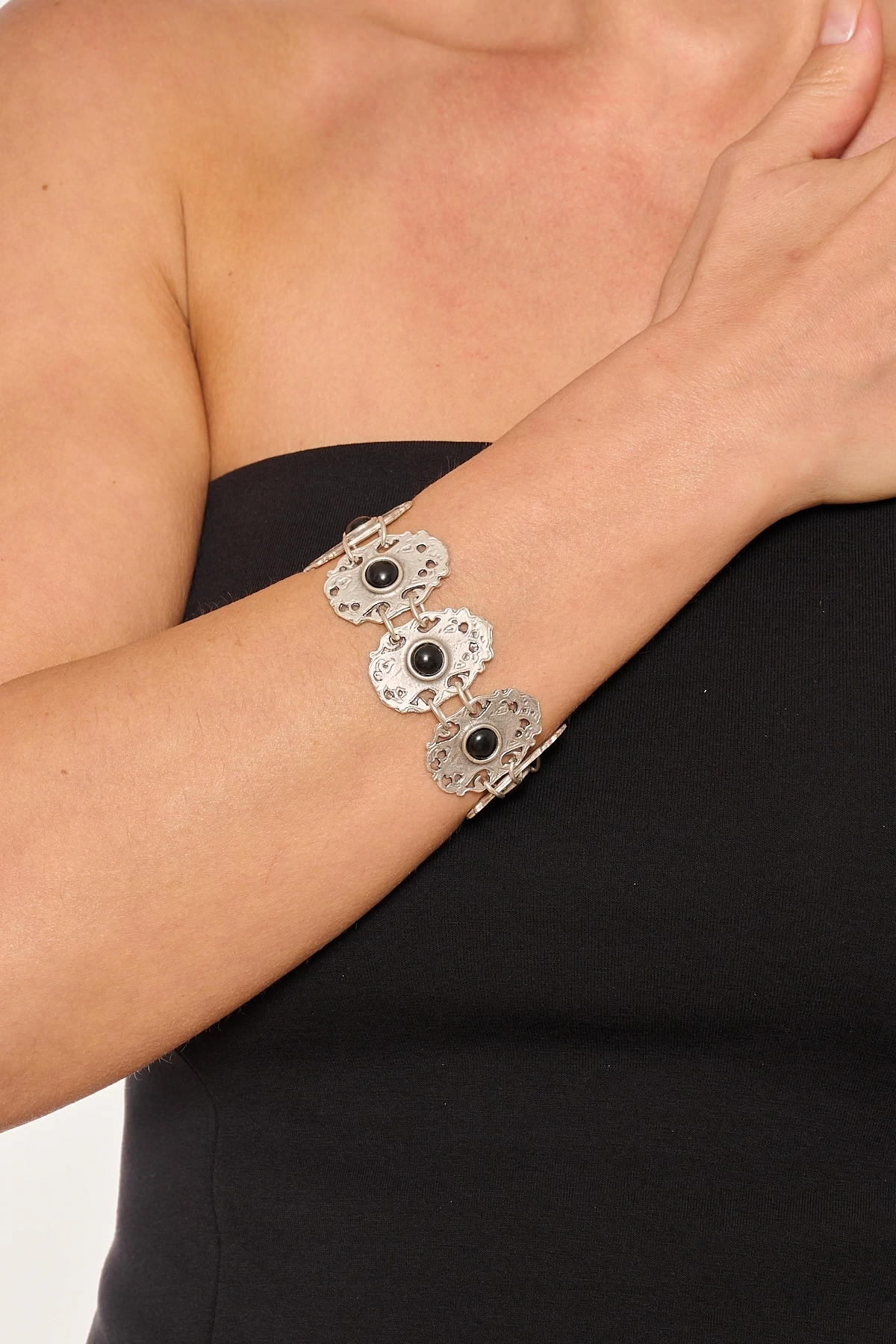 Kiraz Burgundy Stoned Silver Plated Bracelet