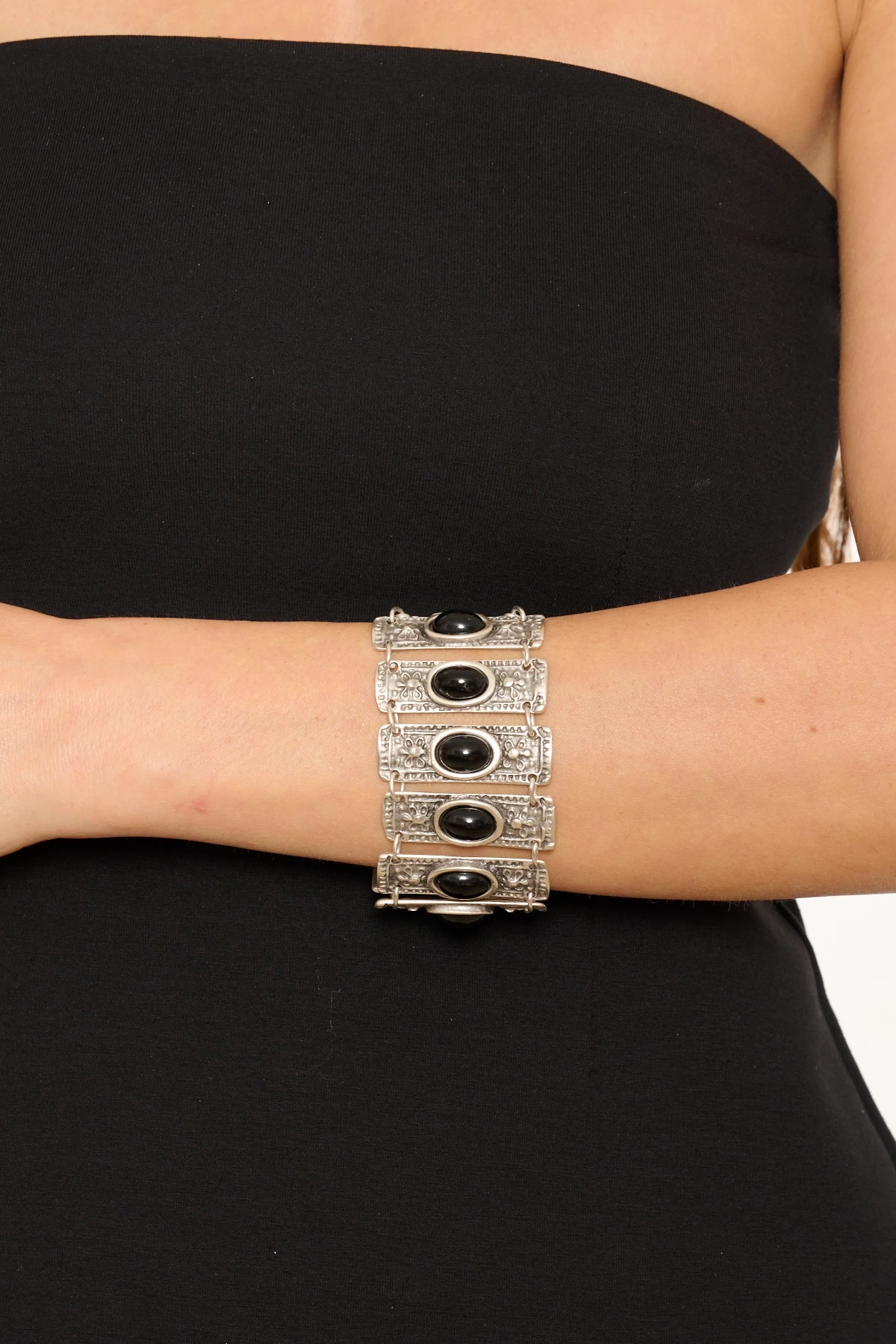Kiraz Burgundy Stoned Silver Plated Bracelet