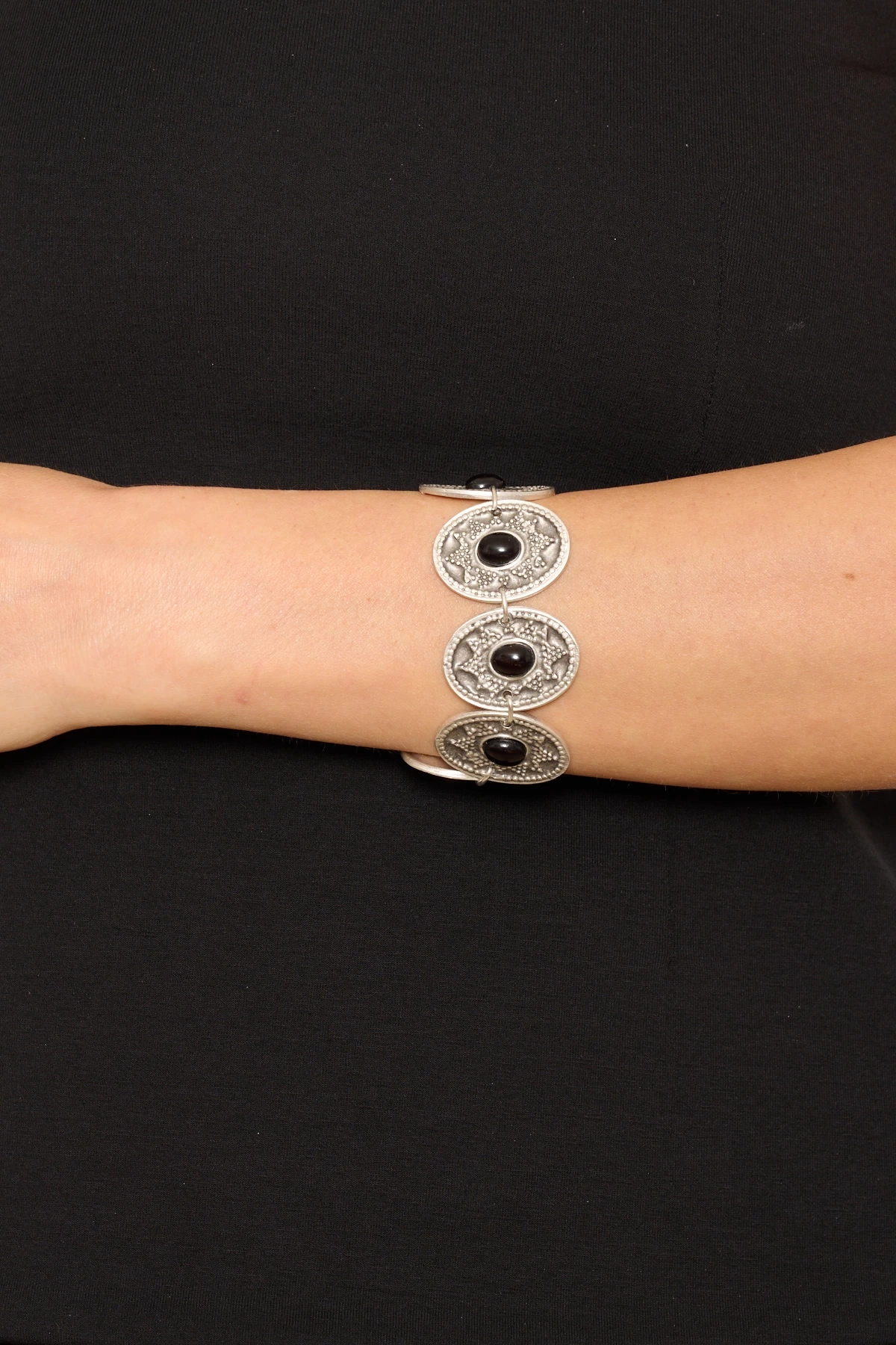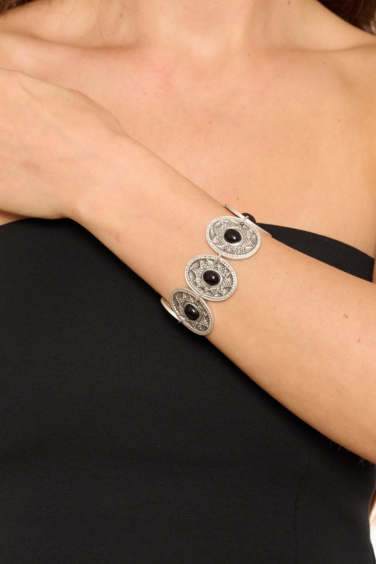 Kiraz Black Stoned Silver Plated Bracelet
