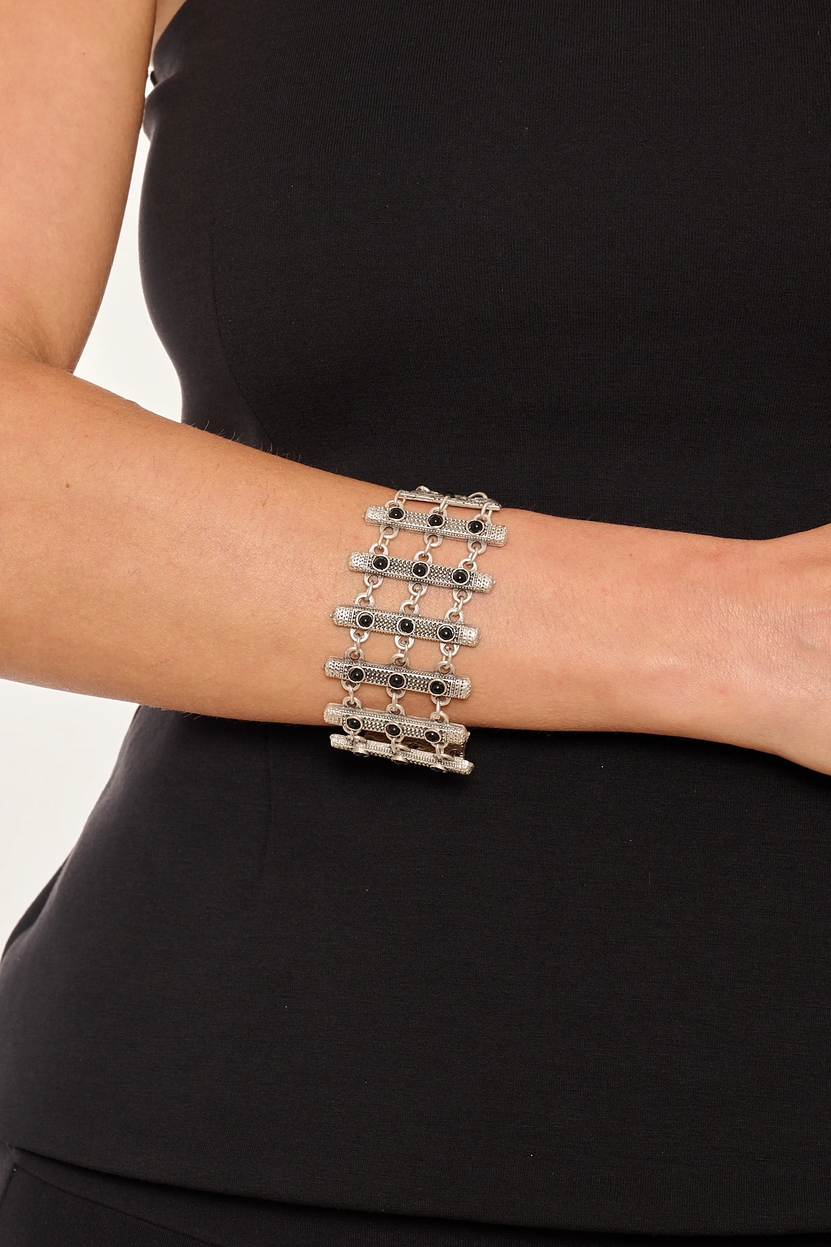 Kiraz Burgundy Stoned Silver Plated Bracelet