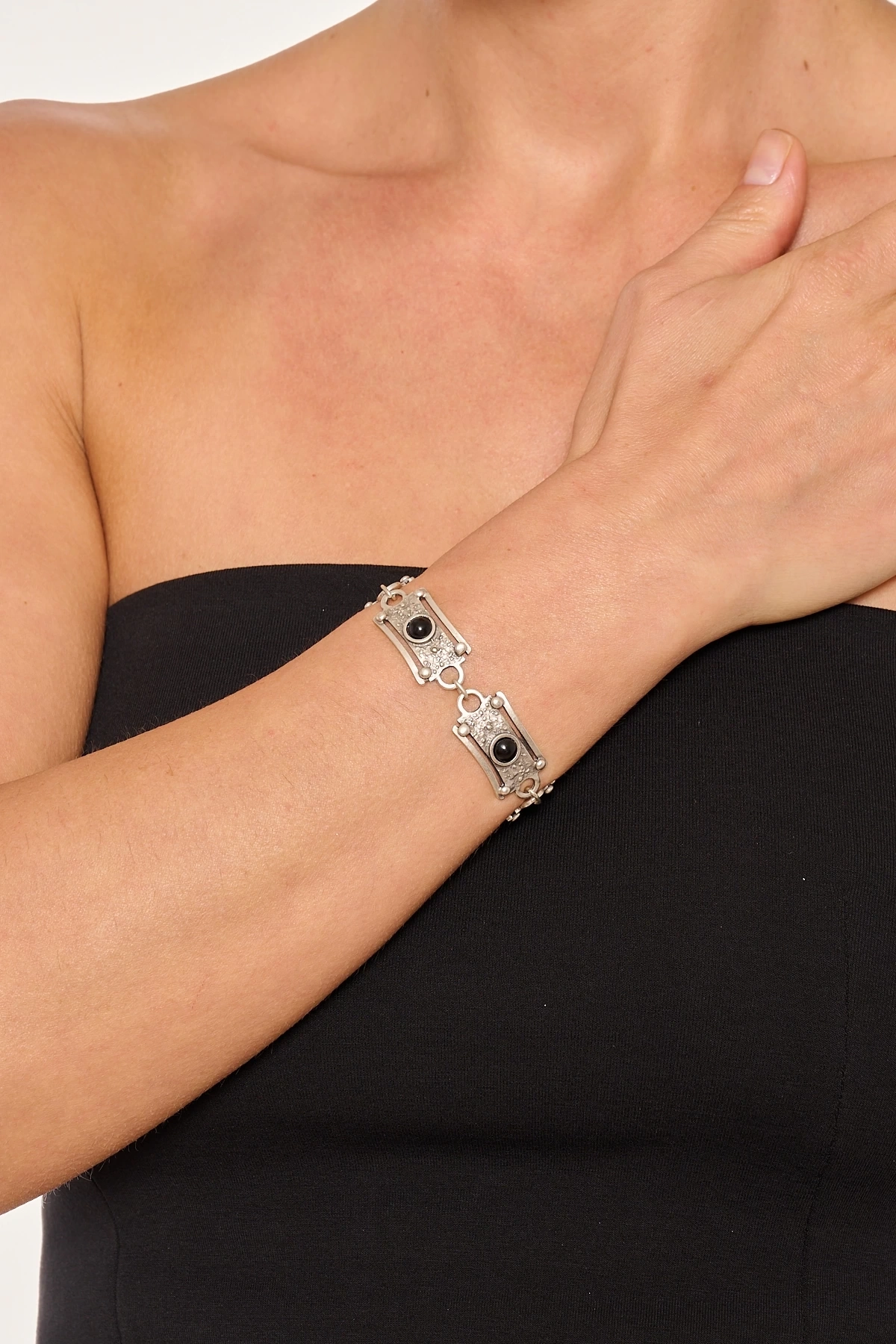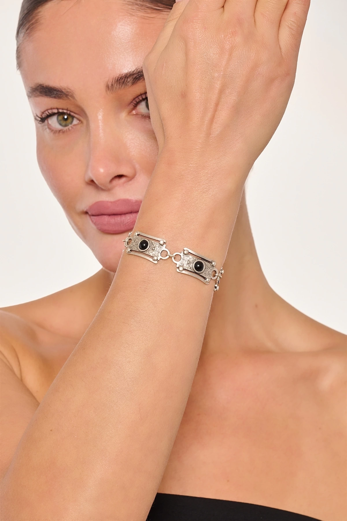 Kiraz Burgundy Stoned Silver Plated Bracelet