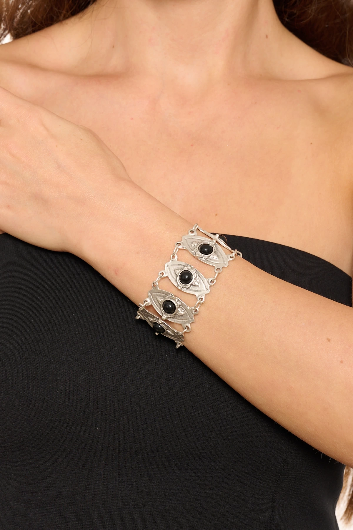 Kiraz Burgundy Stoned Silver Plated Bracelet