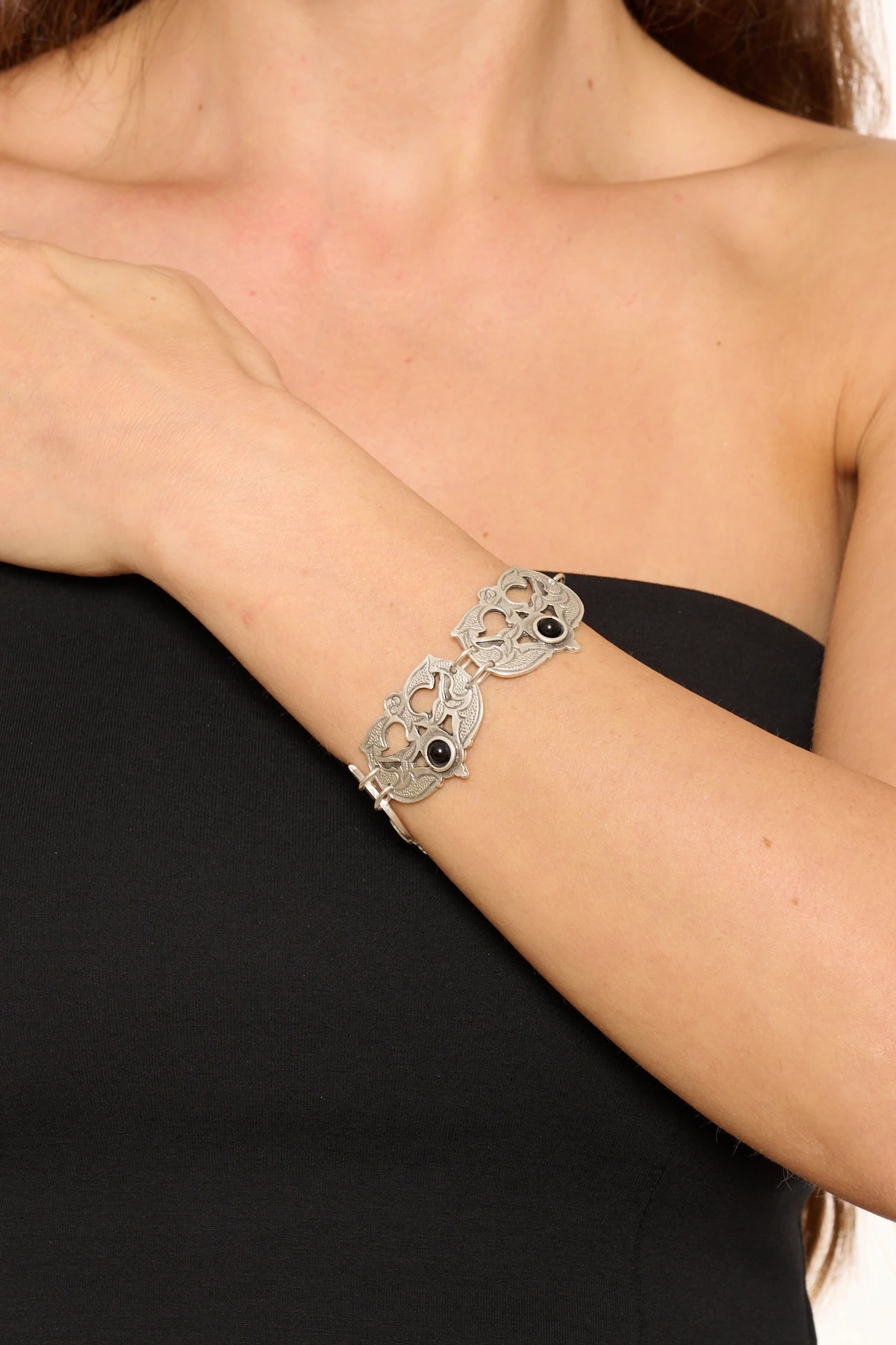 Kiraz Black Stoned Silver Plated Bracelet