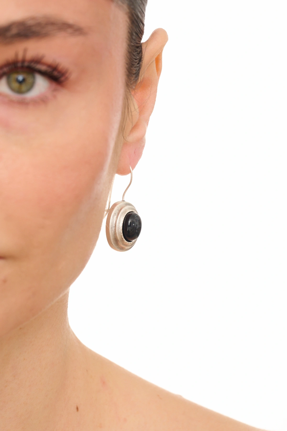 Kiraz Black Stoned Silver Plated Earring