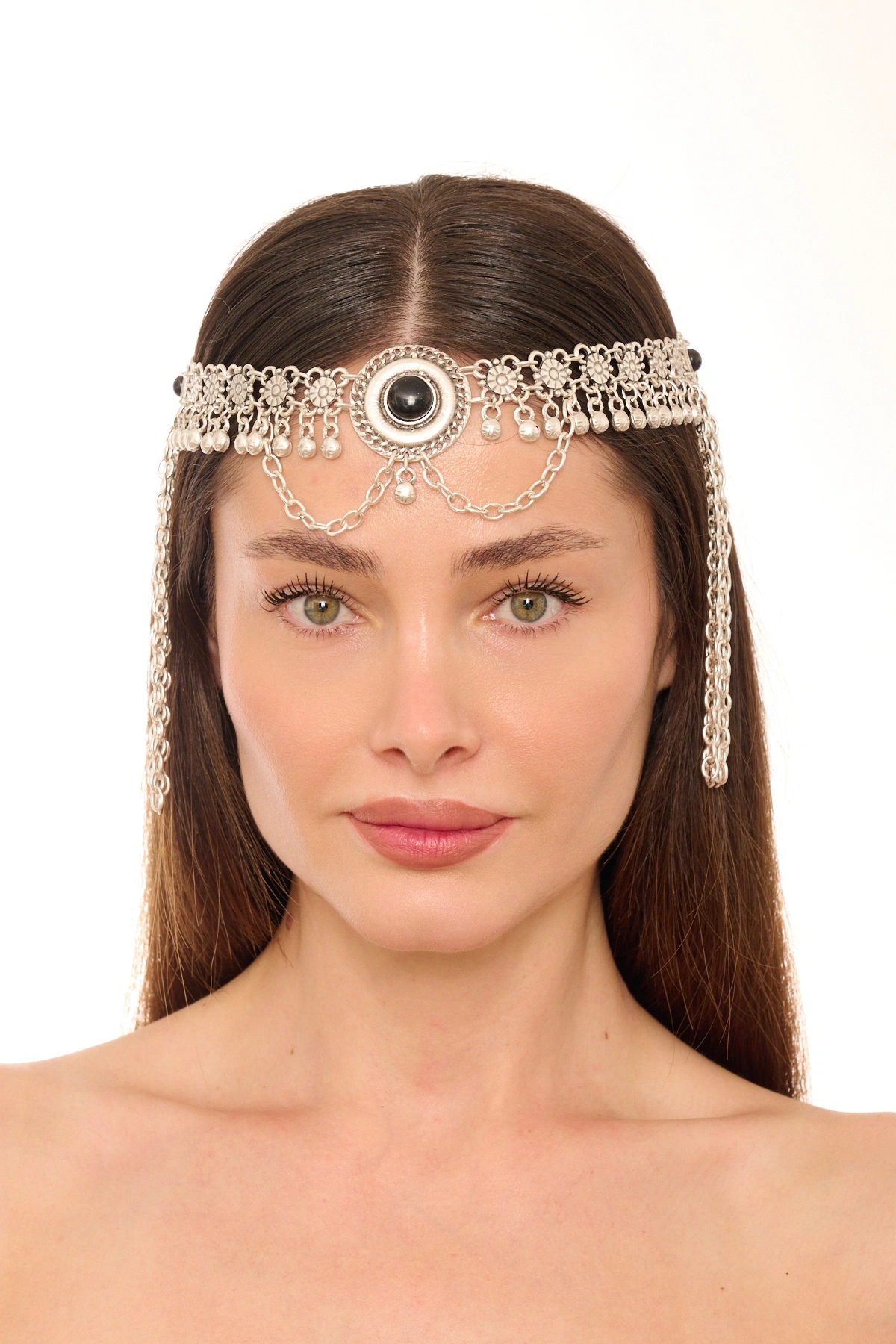 Kiraz Green Stoned Silver Plated Head Accessory
