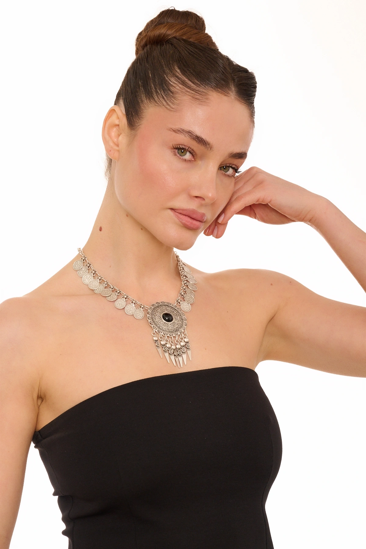 Kiraz Black Stoned Silver Plated Necklace