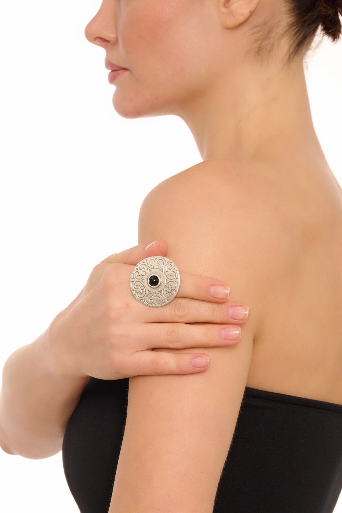 Kiraz Black Stoned Silver Plated Ring