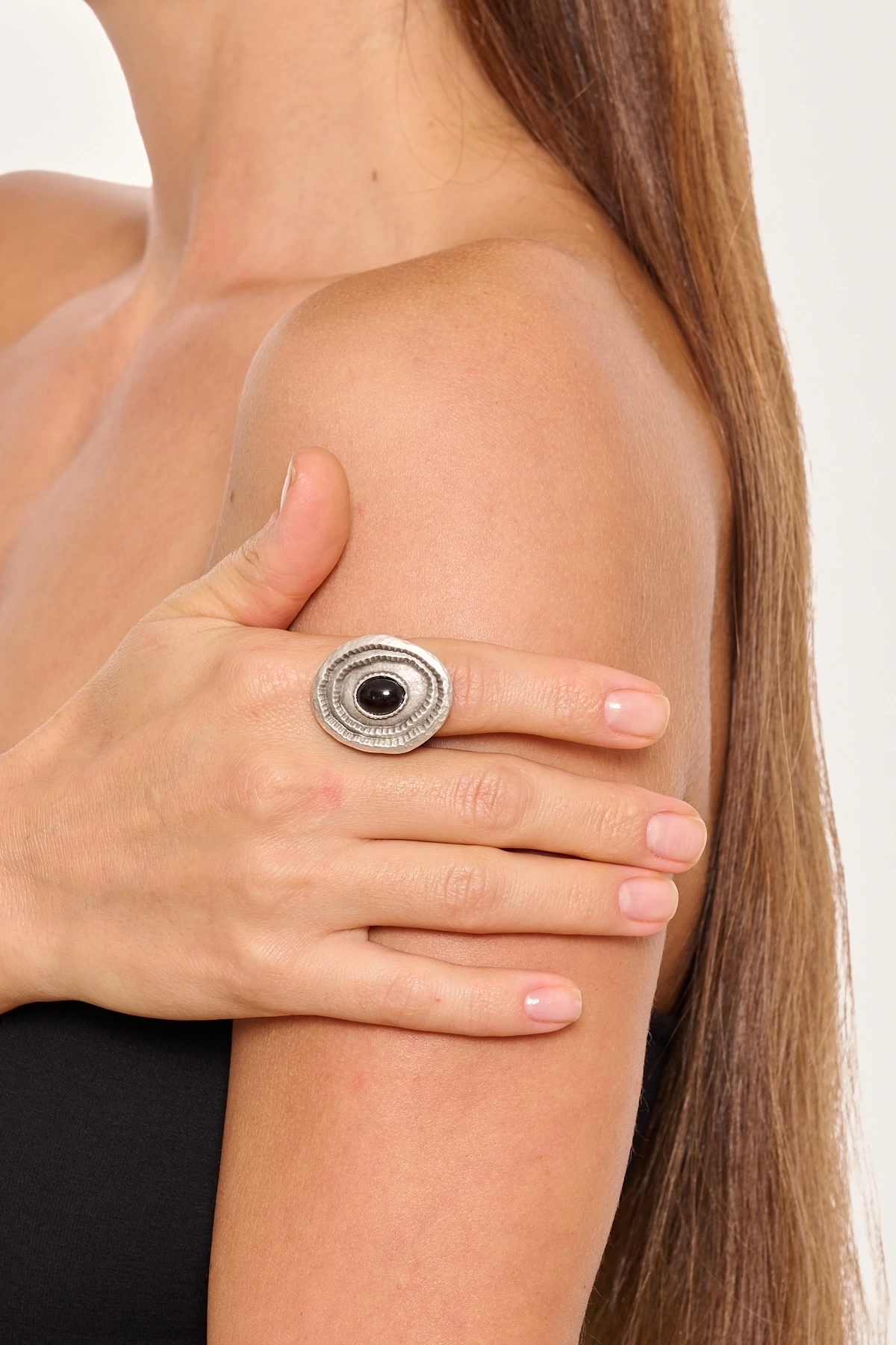 Kiraz Black Crystal Stoned Silver Plated Ring