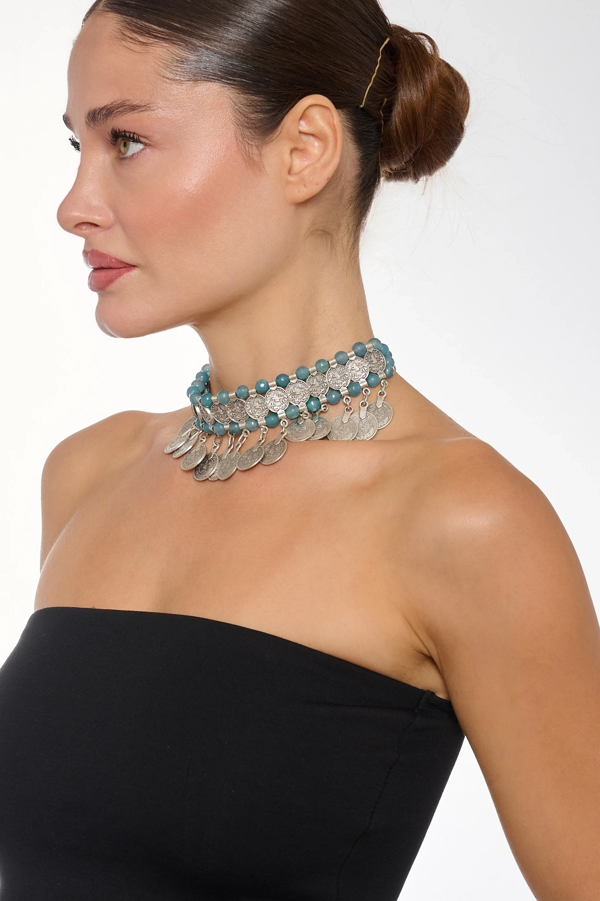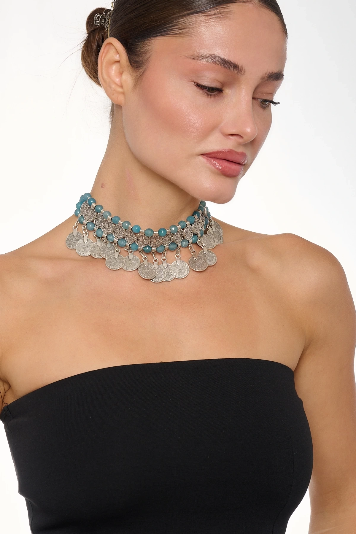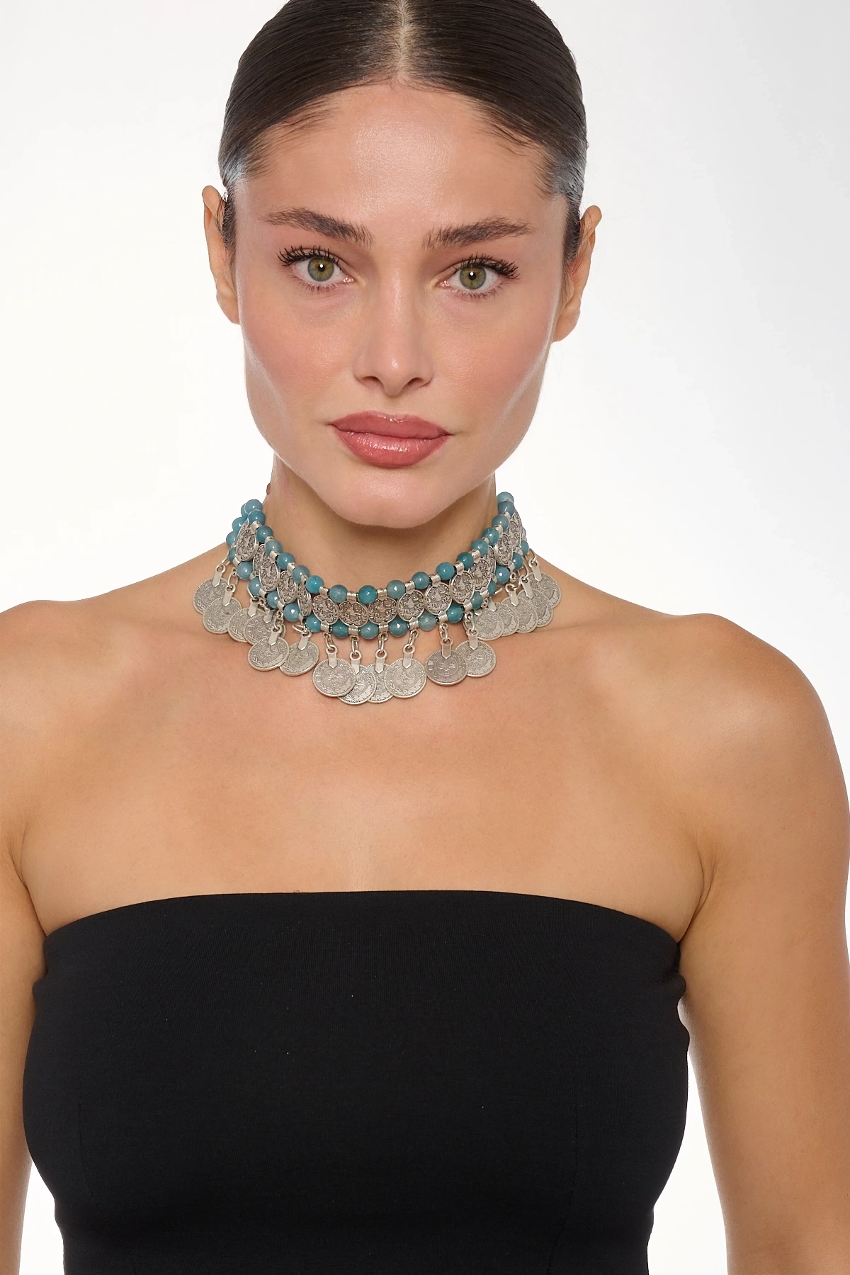 Kiraz Turquoise Beaded Silver Plated Necklace