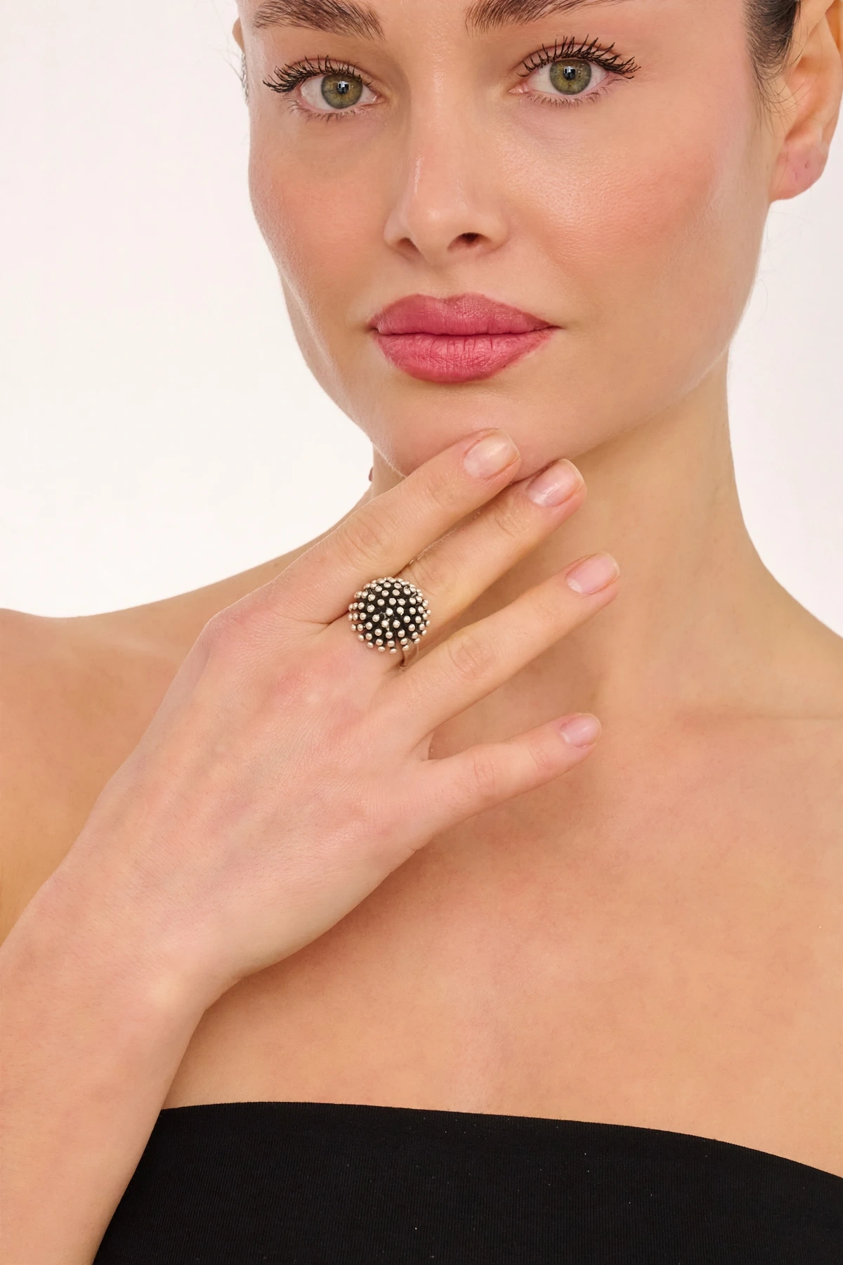 Kiraz Hematite Crystal Stoned Gold Plated Ring