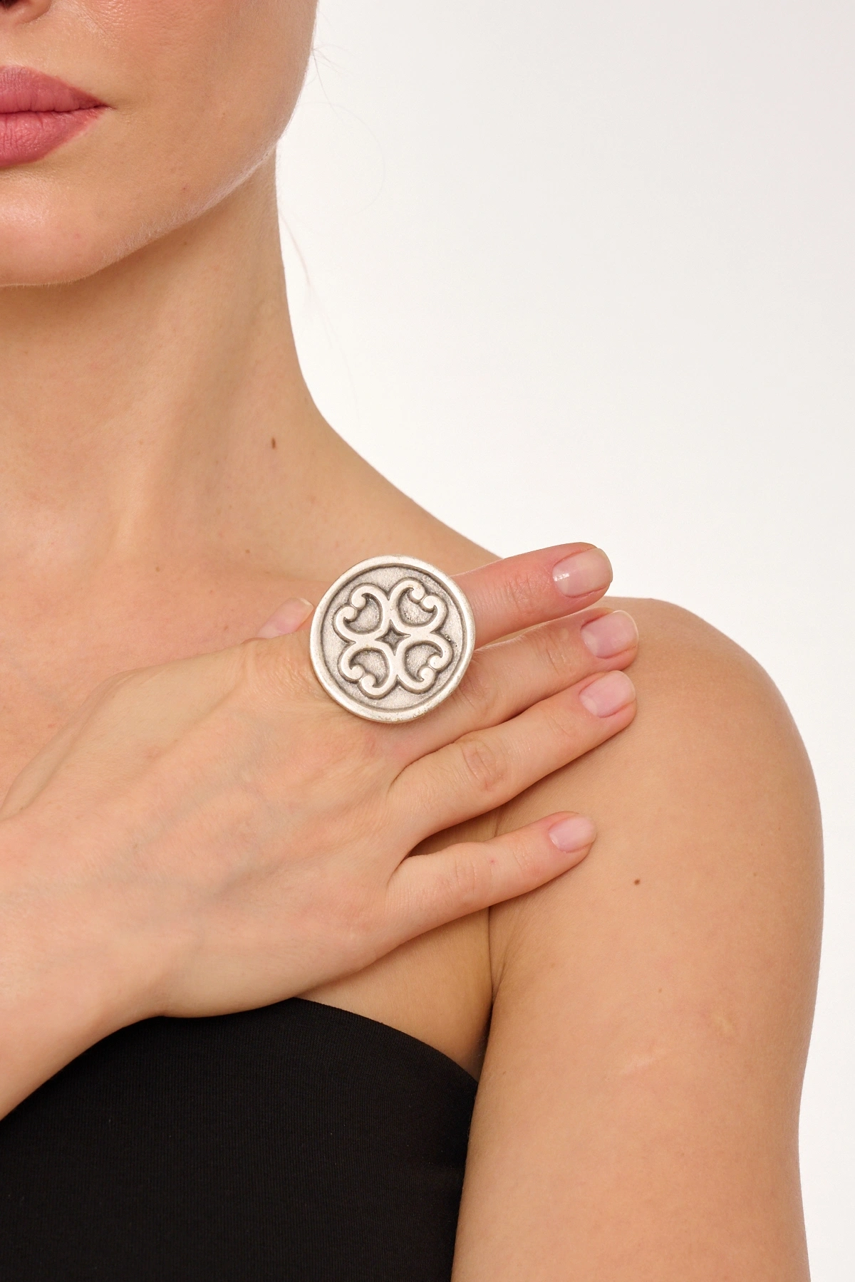 Kiraz Hematite Crystal Stoned Gold Plated Ring