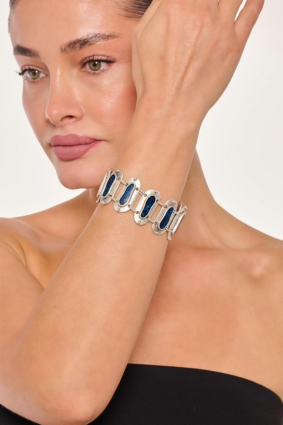 Kiraz Blue Enameled Silver Plated Bracelet