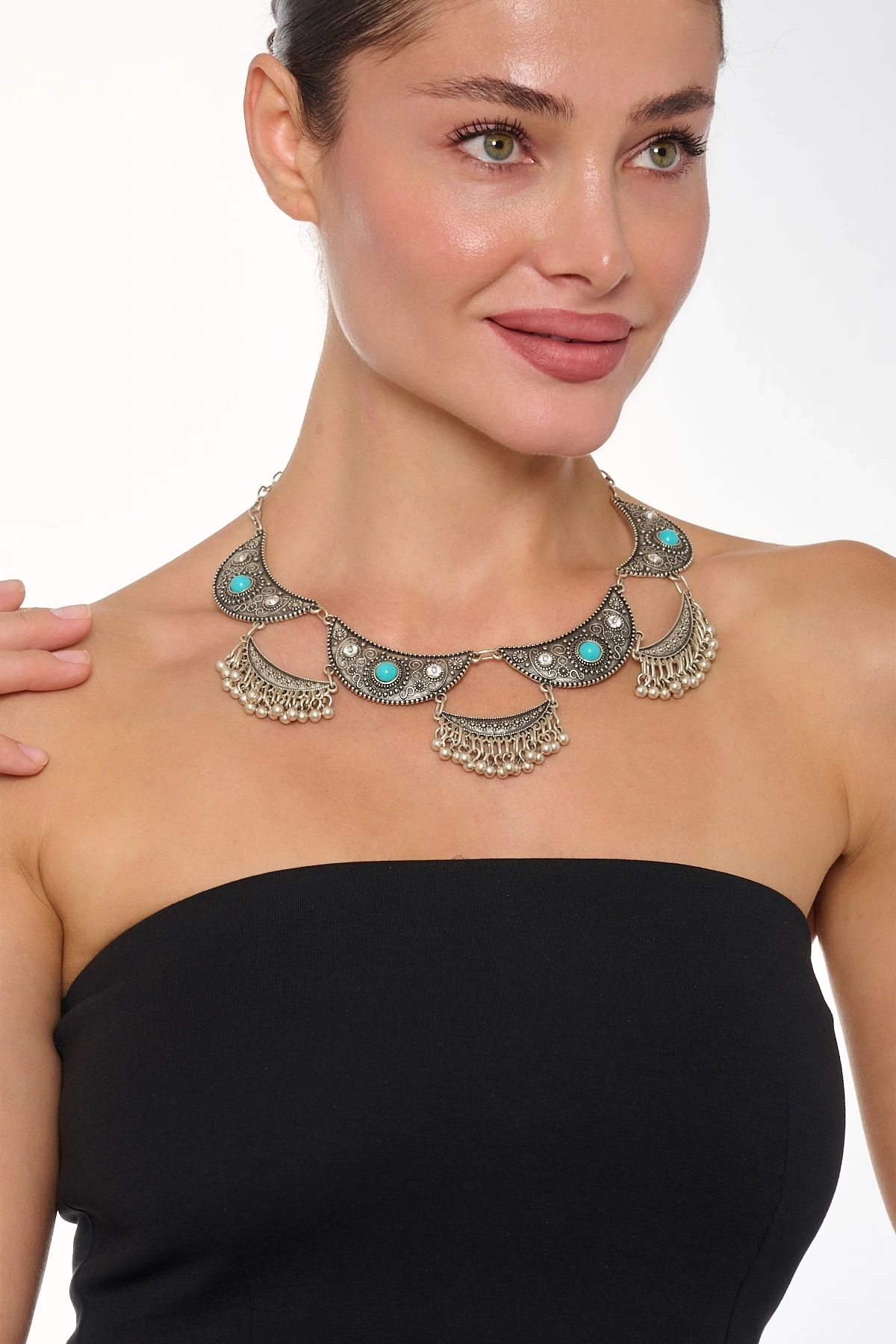 Kiraz Turquoise Stoned Silver Plated Necklace
