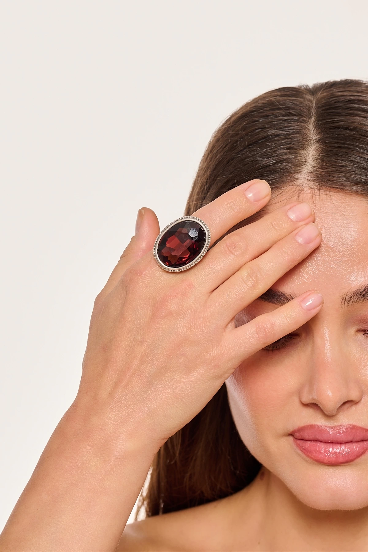 Kiraz Burdungy Crystal Stoned Silver Plated Ring