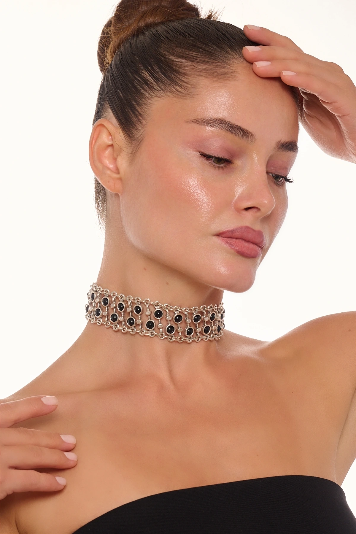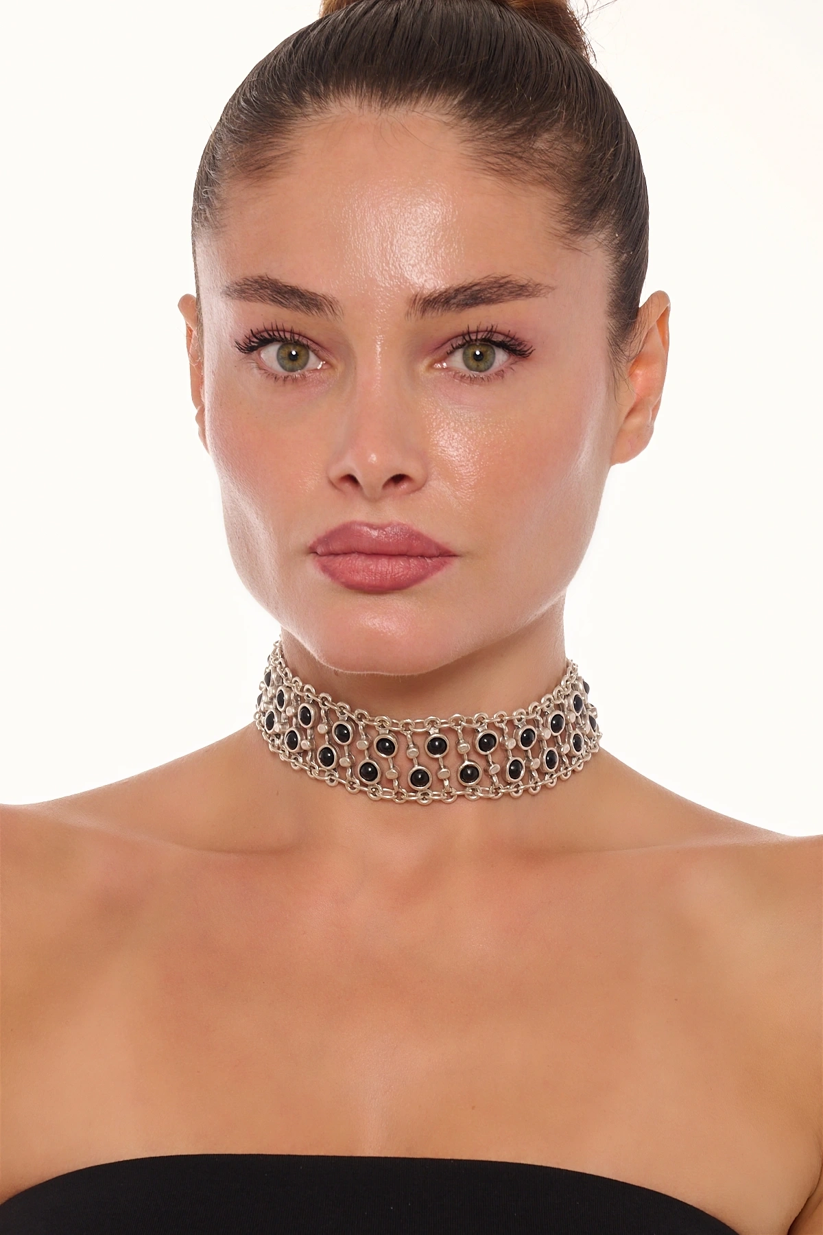 Kiraz Leather Green Enameled Silver Plated Necklace