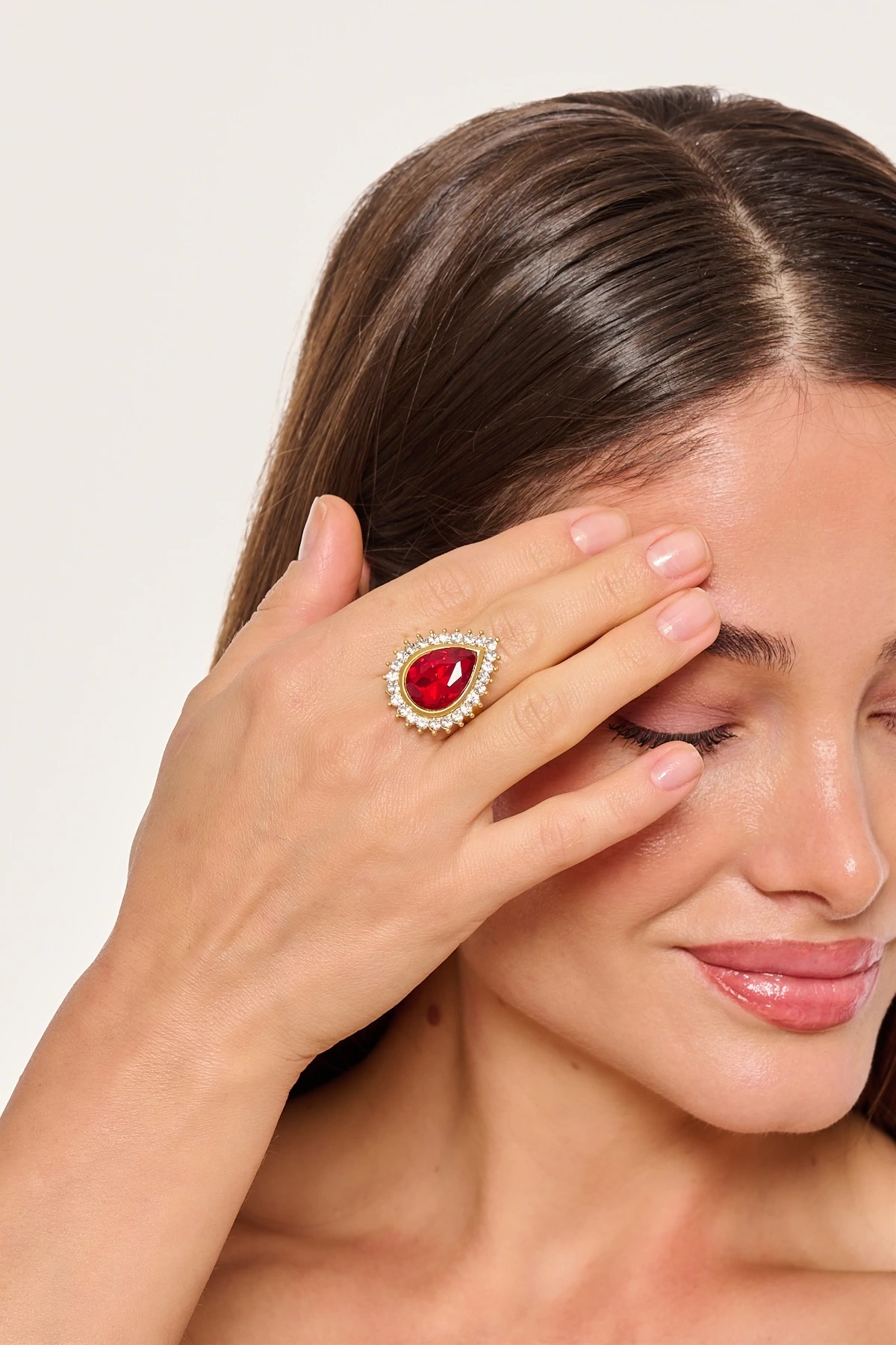Kiraz Burgundy Crystal Gold Plated Ring