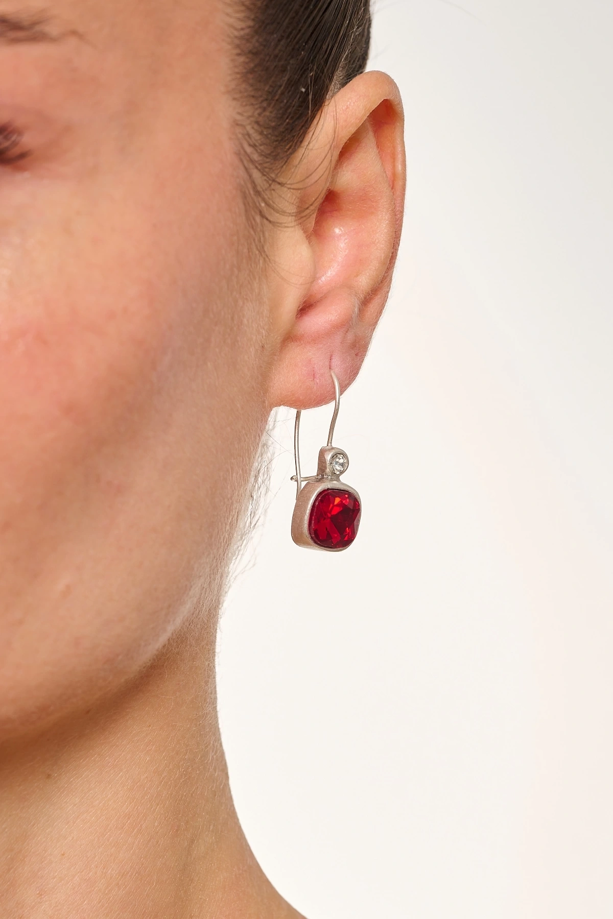 Kiraz Burgundy Crystal Stoned Silver Plated Earring