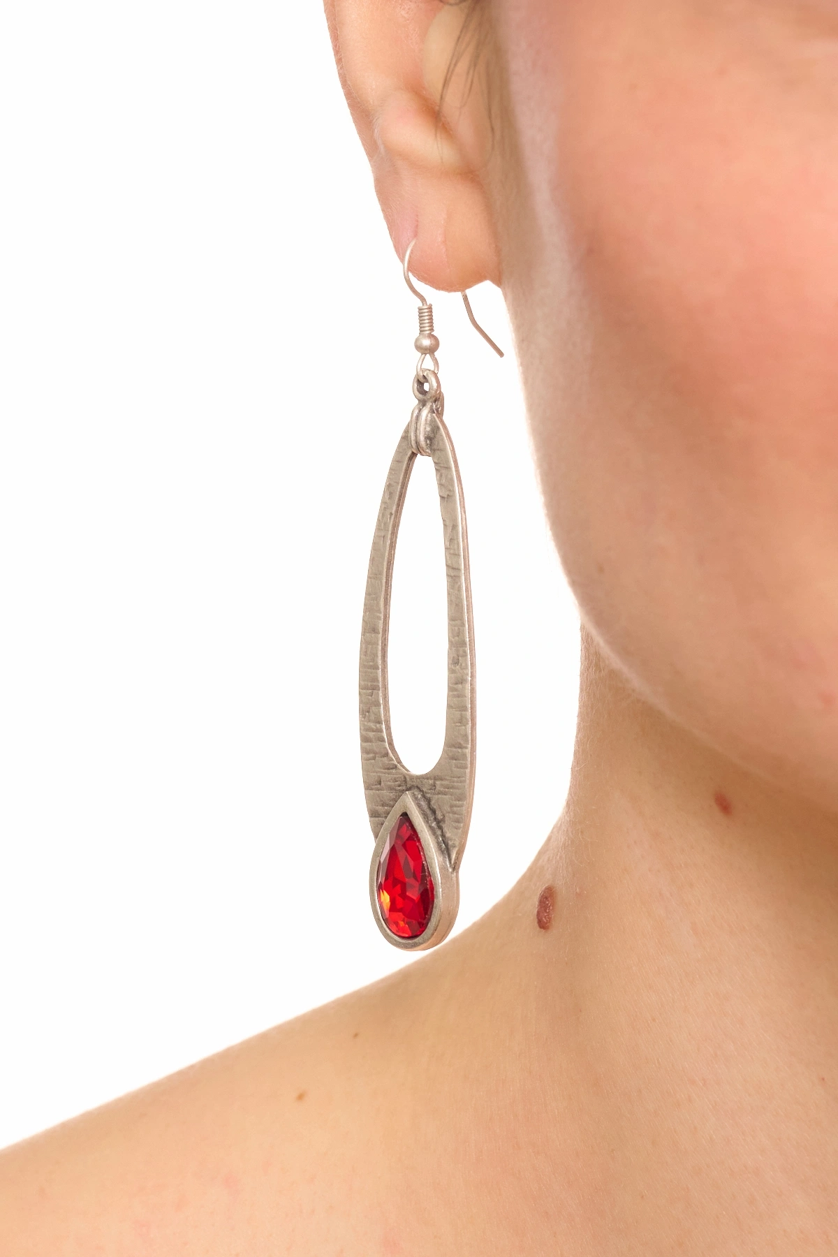 Kiraz Burgundy Crystal Stoned Silver Plated Earring
