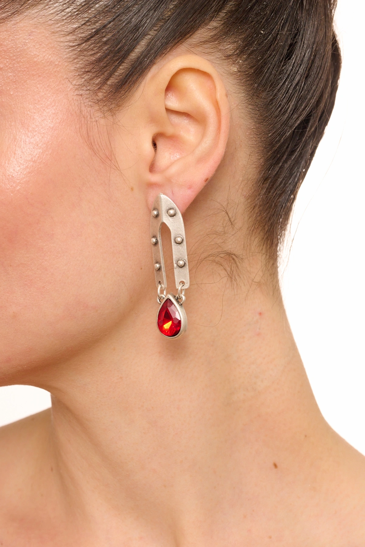 Kiraz Burgundy Crystal Stoned Silver Plated Earring