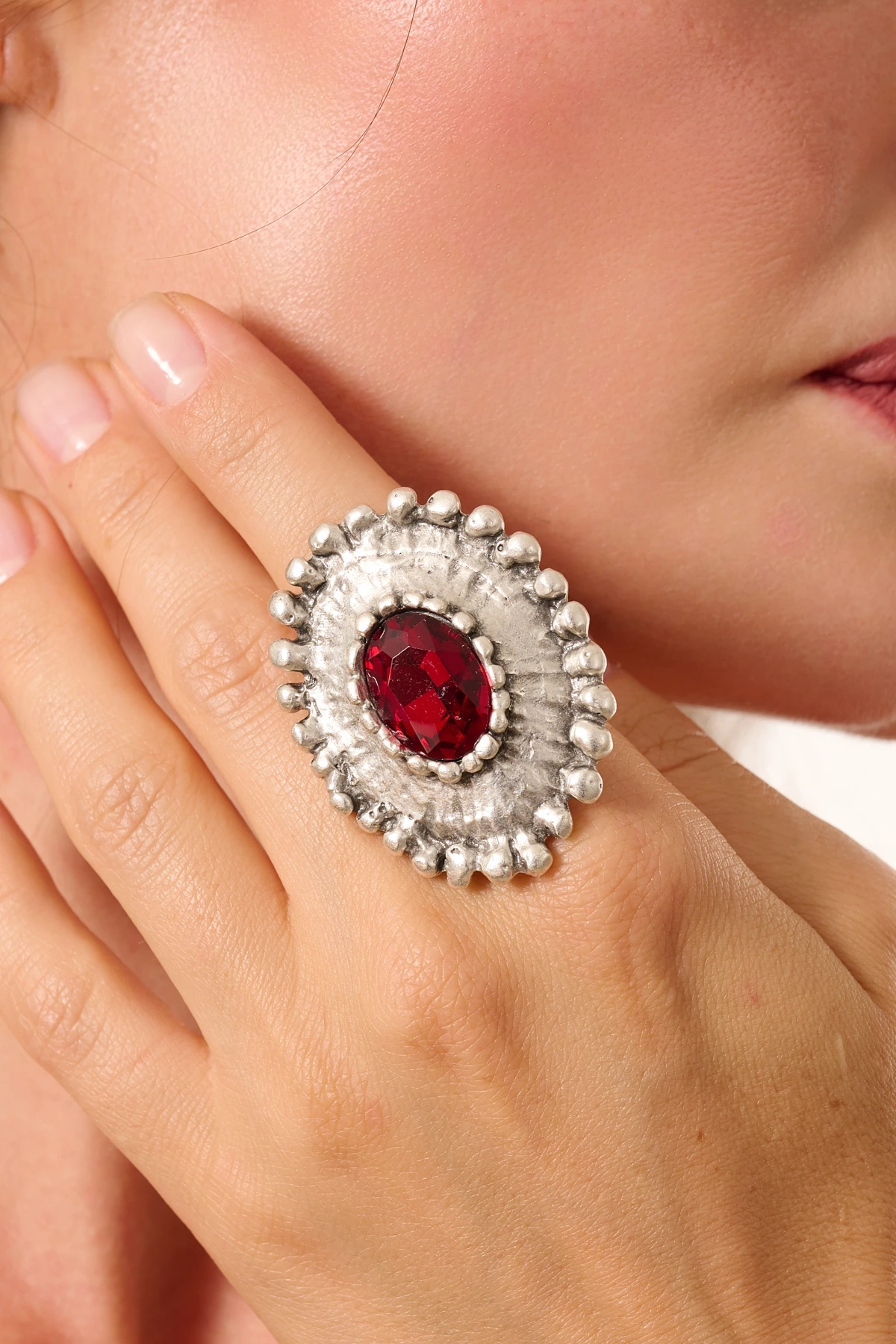 Kiraz Burgundy Stoned Silver Plated Eye Ring