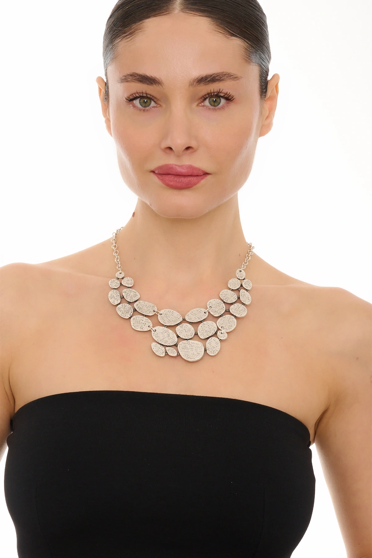 Kiraz Leather Burgundy Enameled Silver Plated Necklace