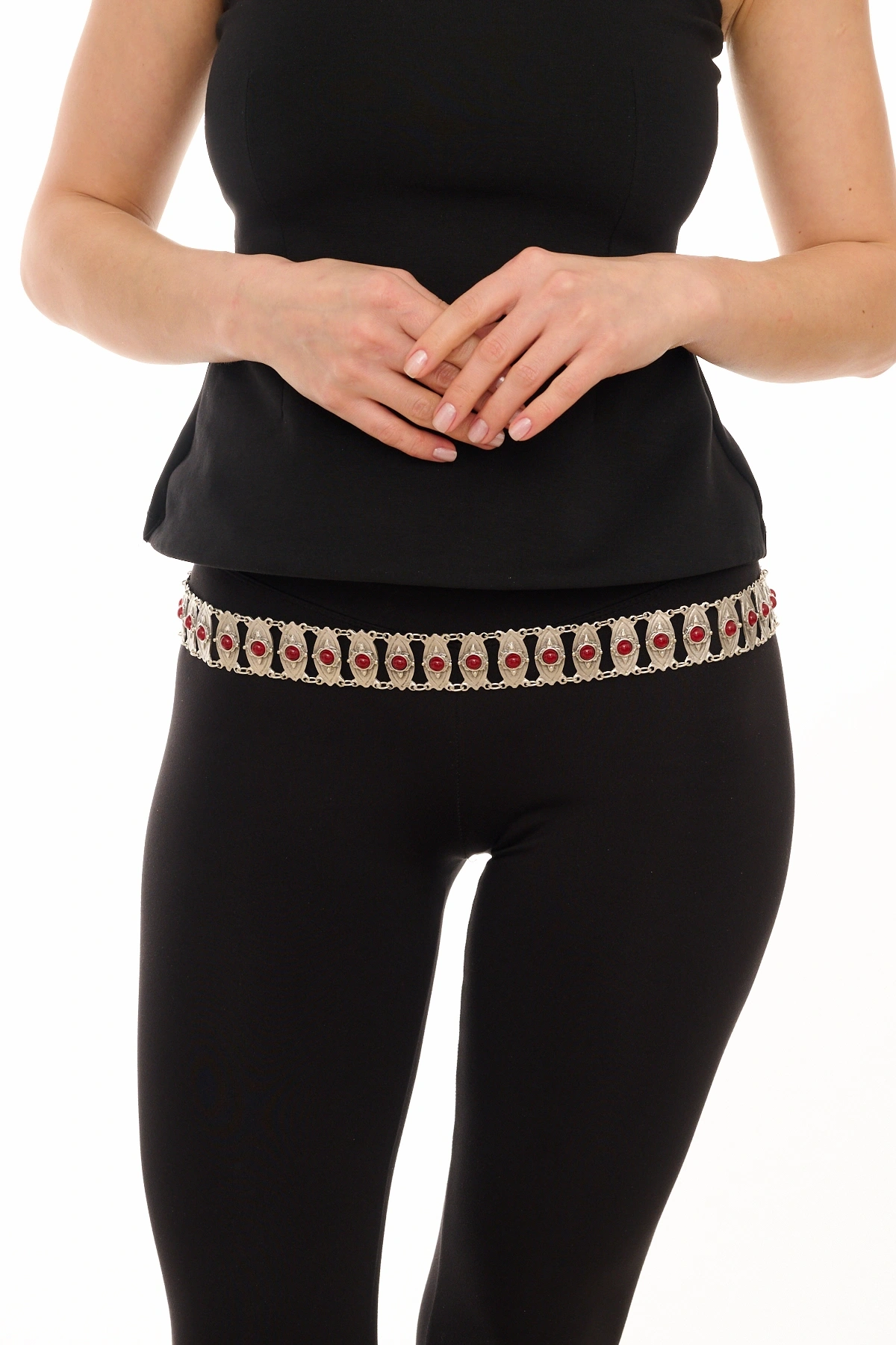 Kiraz Burgundy Stoned Silver Plated Belt