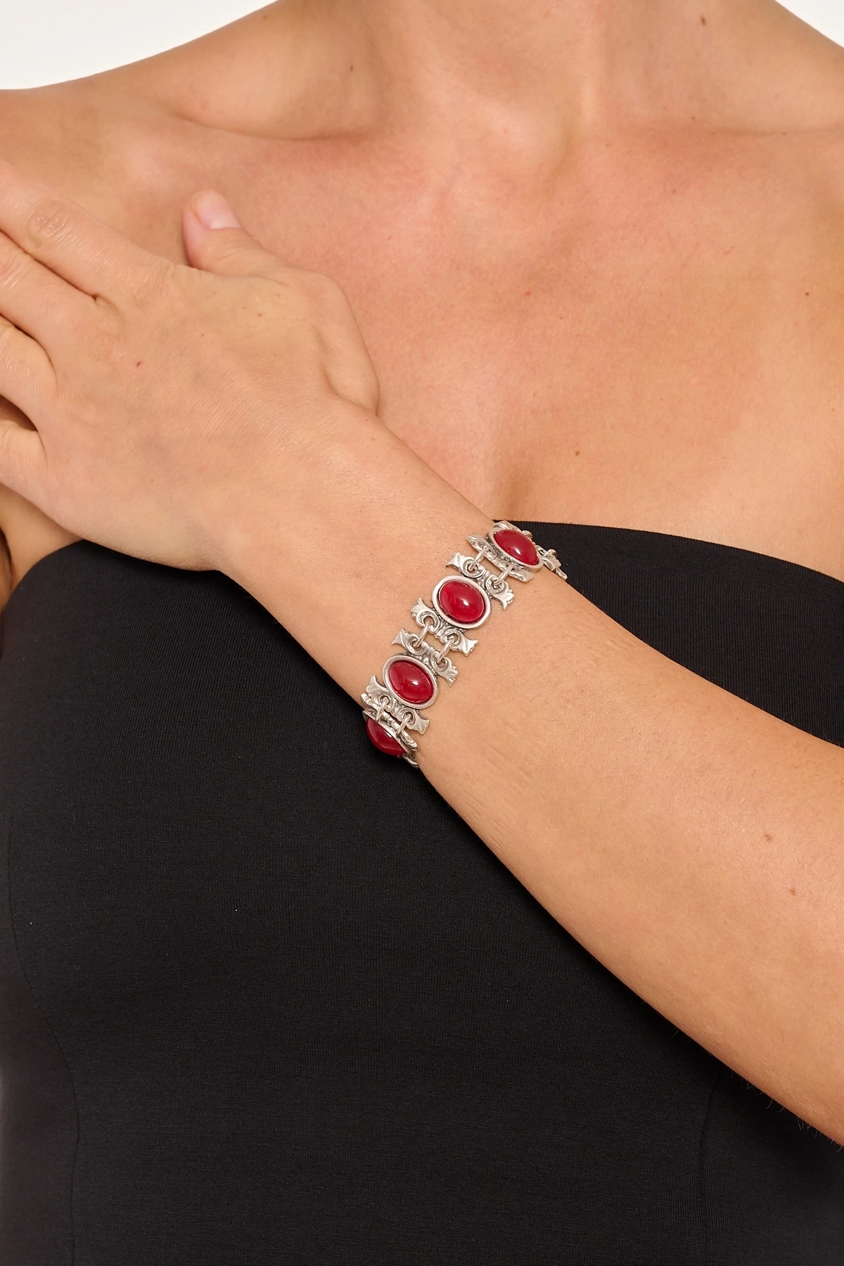 Kiraz Burgundy Stoned Silver Plated Bracelet