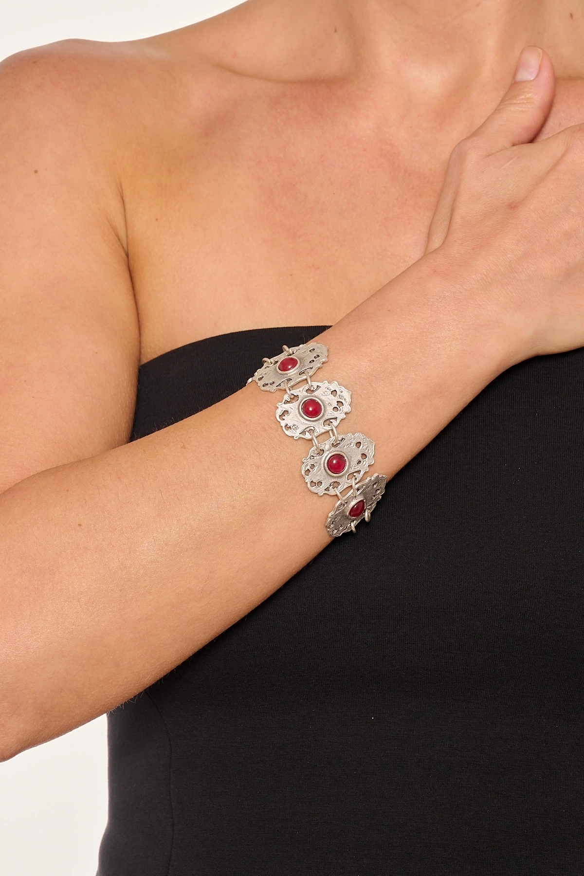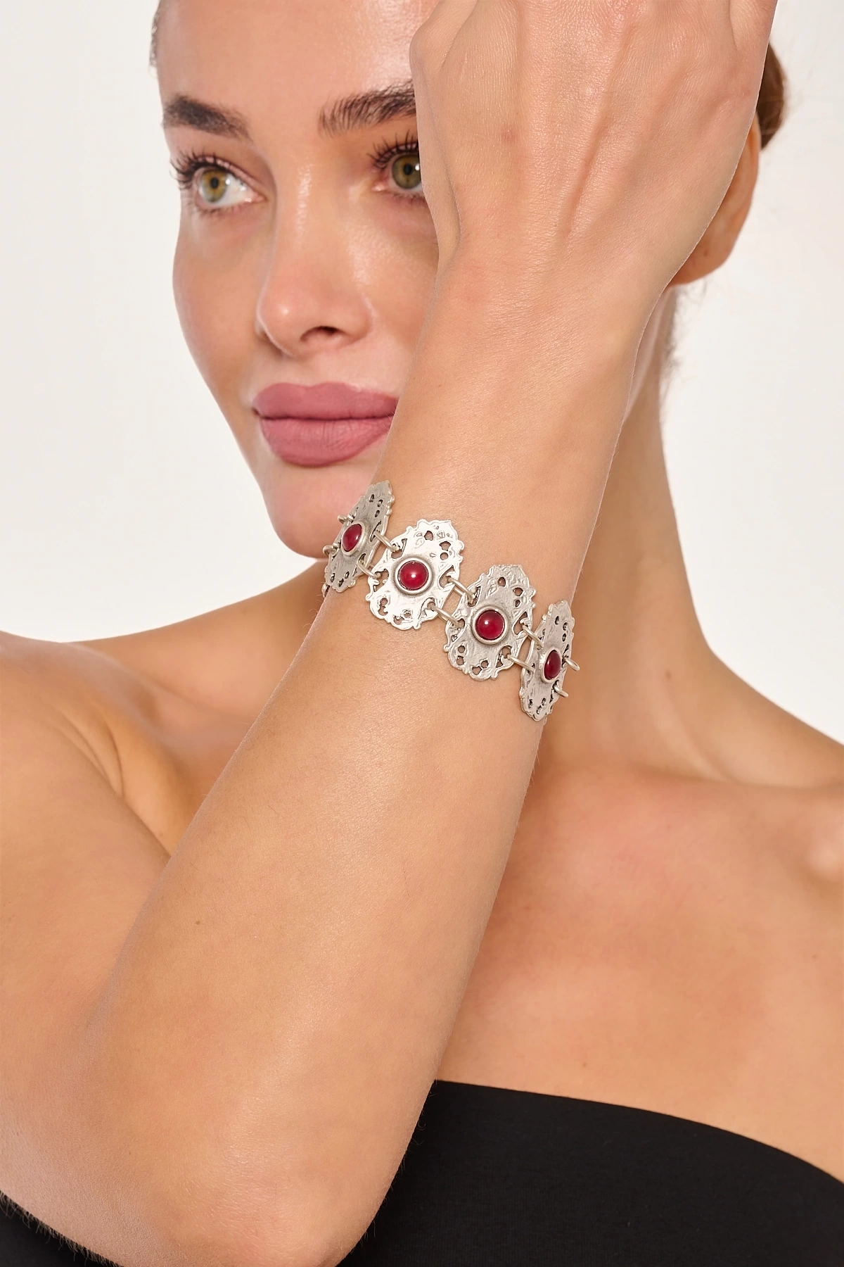 Kiraz Burgundy Stoned Silver Plated Bracelet