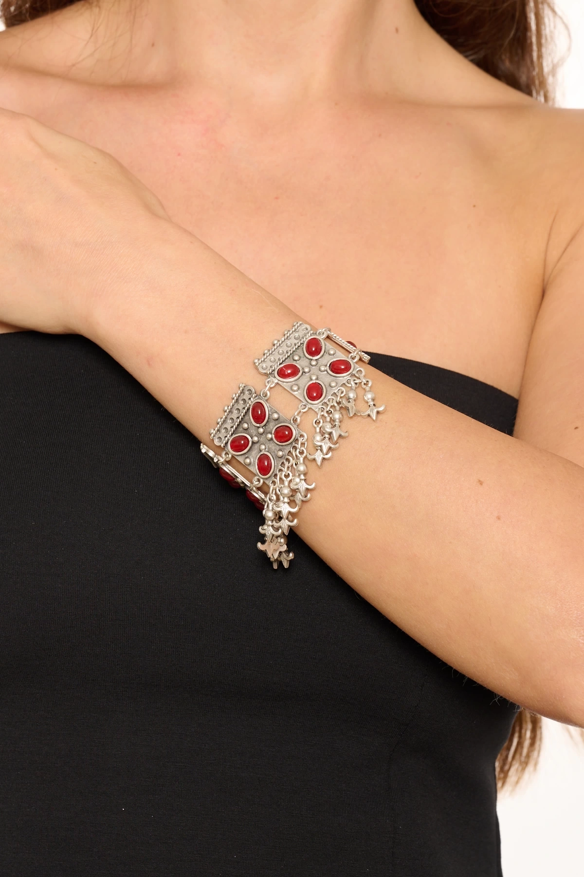Kiraz Burgundy Stoned Silver Plated Bracelet