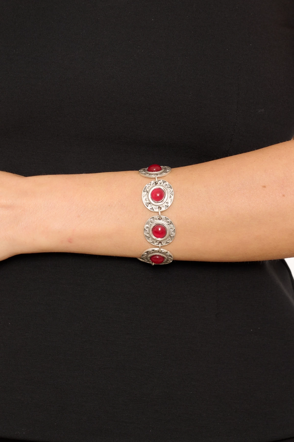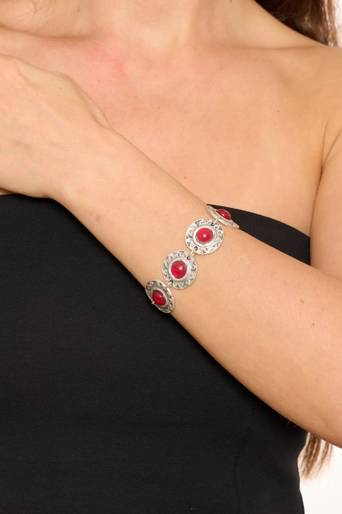 Kiraz Burgundy Stoned Silver Plated Bracelet