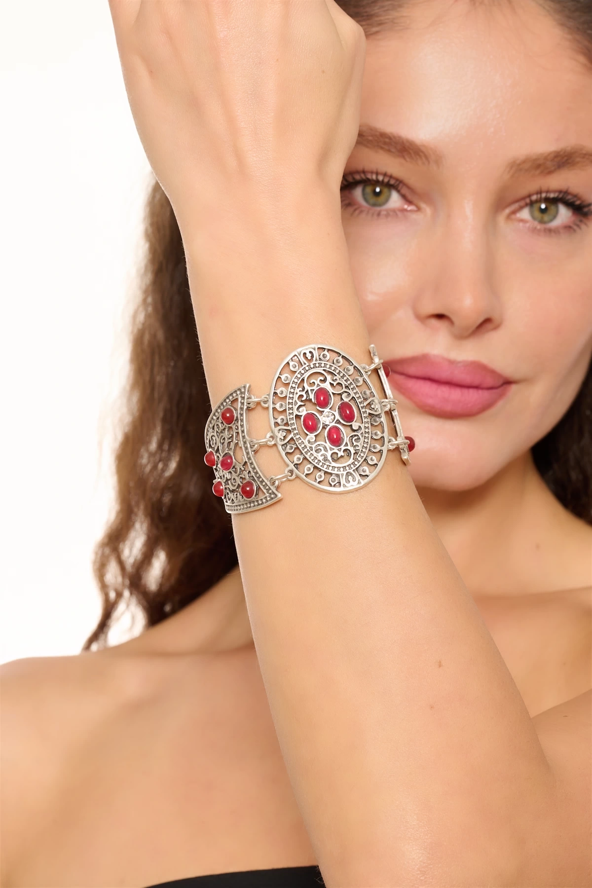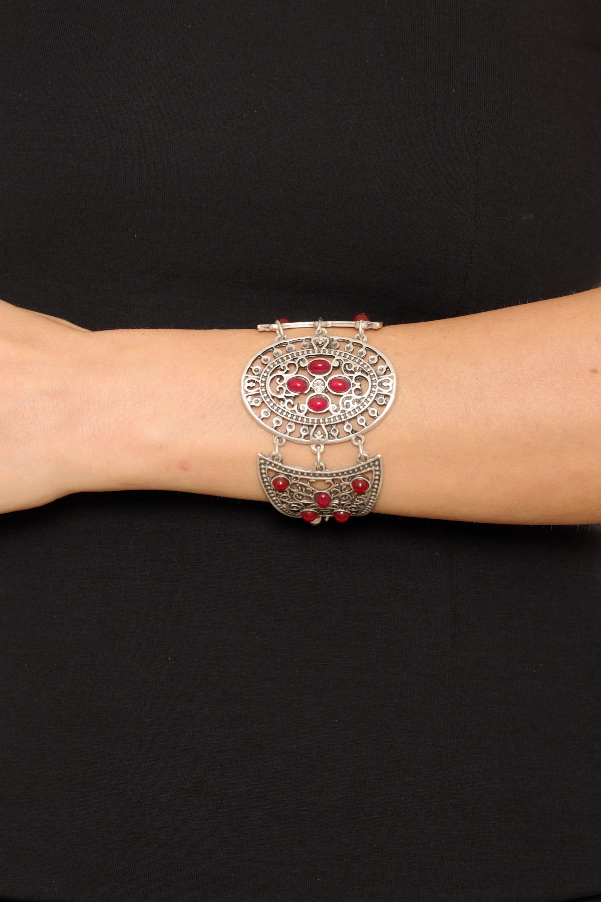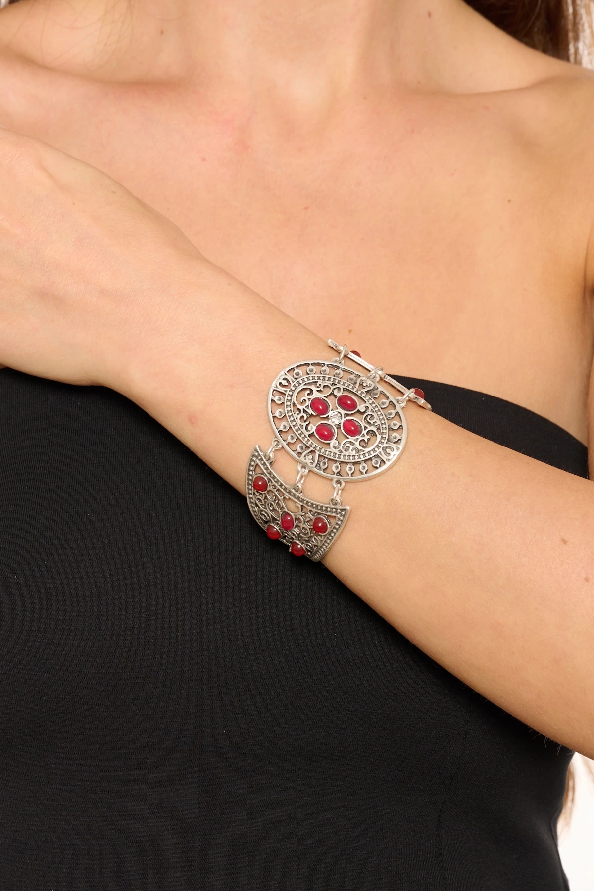 Kiraz Burgundy Stoned Silver Plated Bracelet