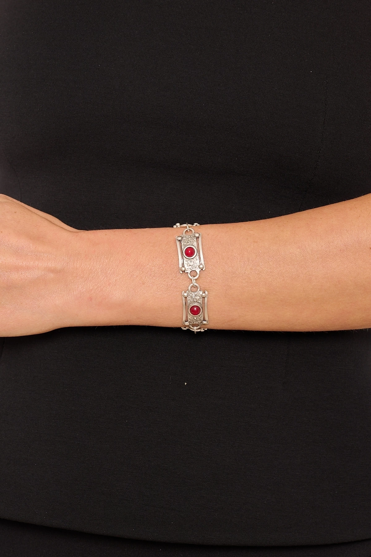 Kiraz Burgundy Stoned Silver Plated Bracelet