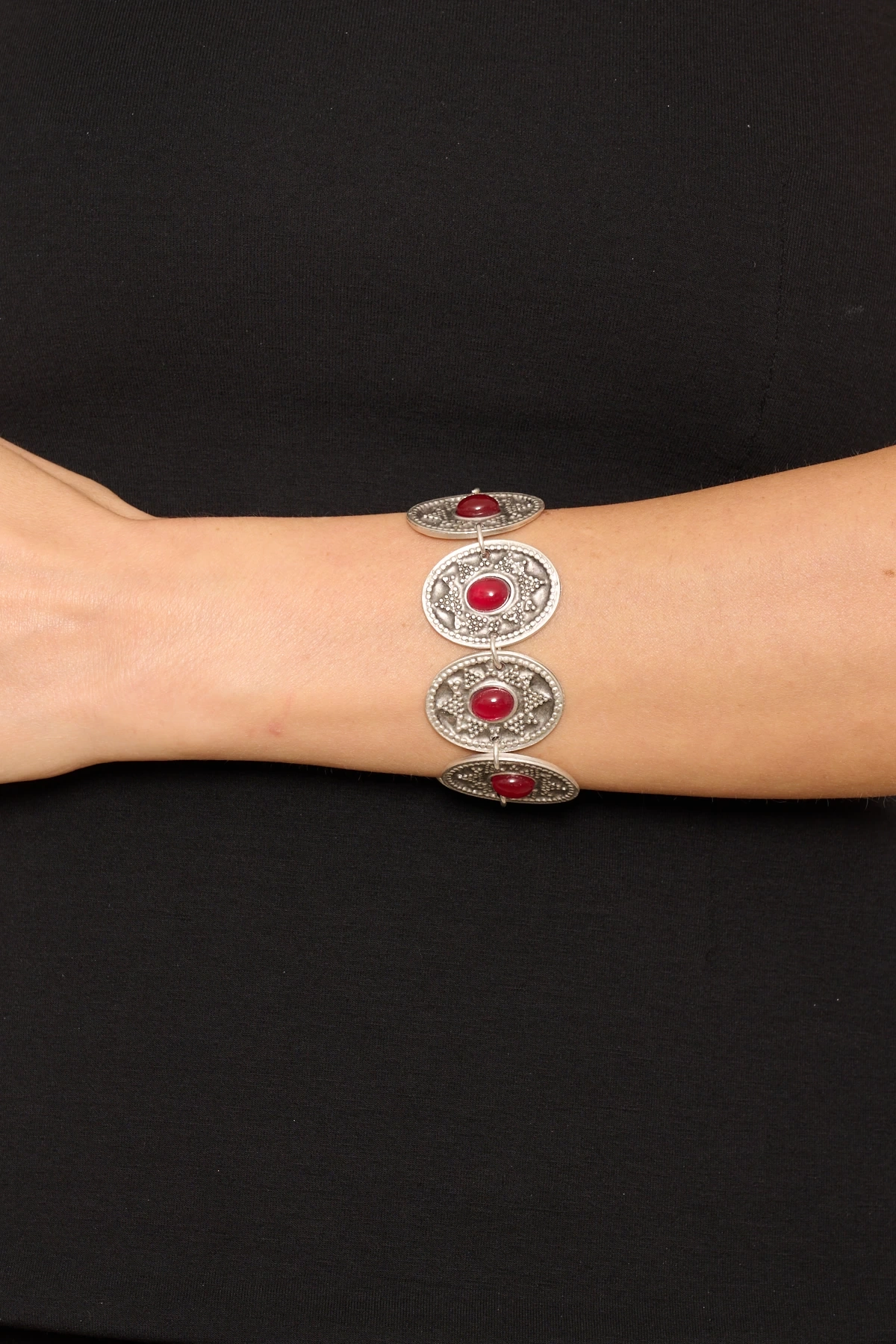 Kiraz Burgundy Stoned Silver Plated Bracelet