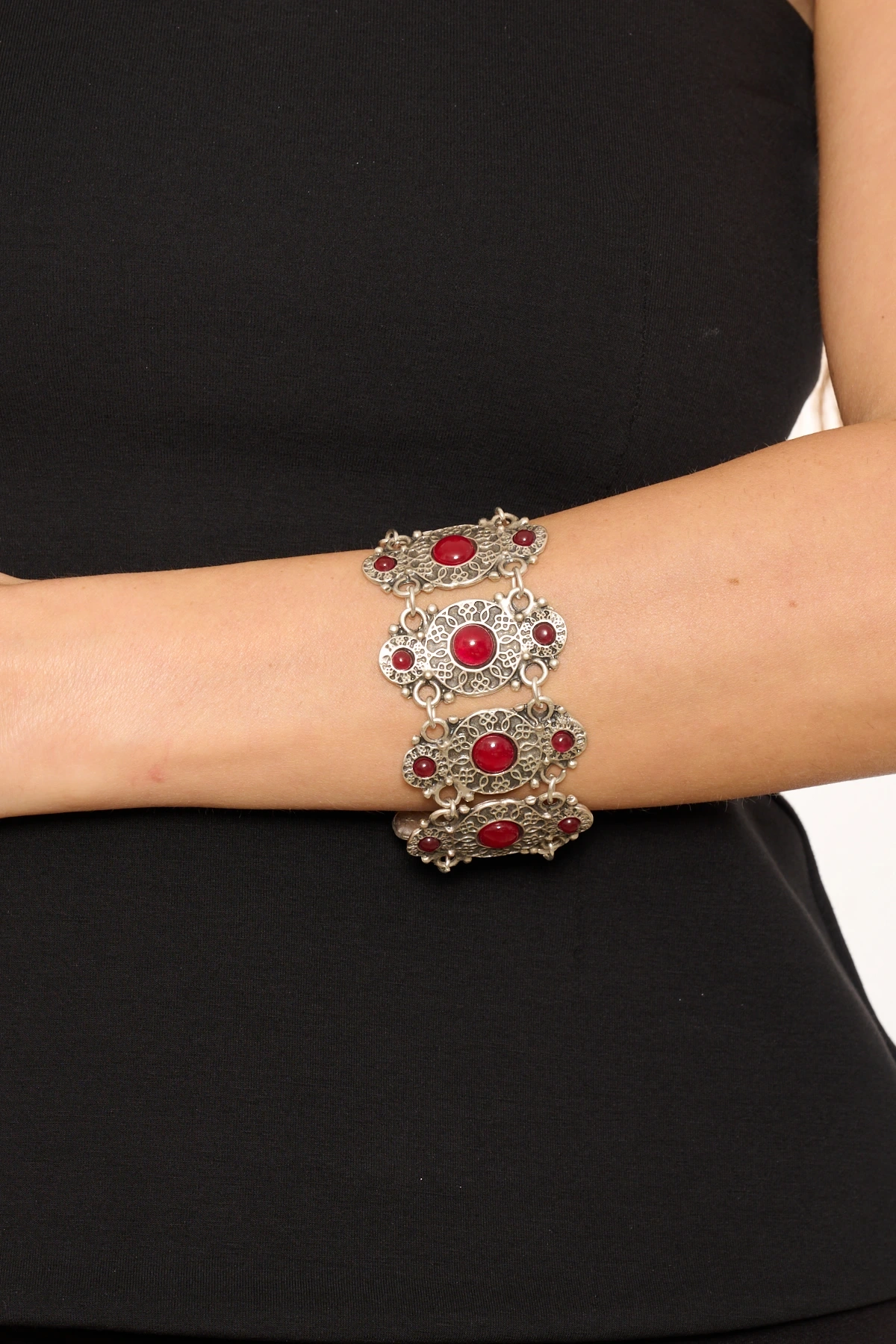 Kiraz Burgundy Stoned Silver Plated Bracelet
