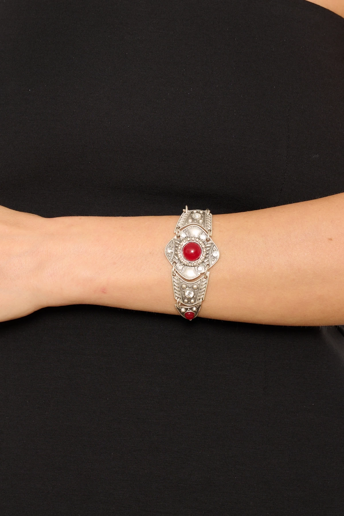 Kiraz Burgundy Stoned Silver Plated Bracelet